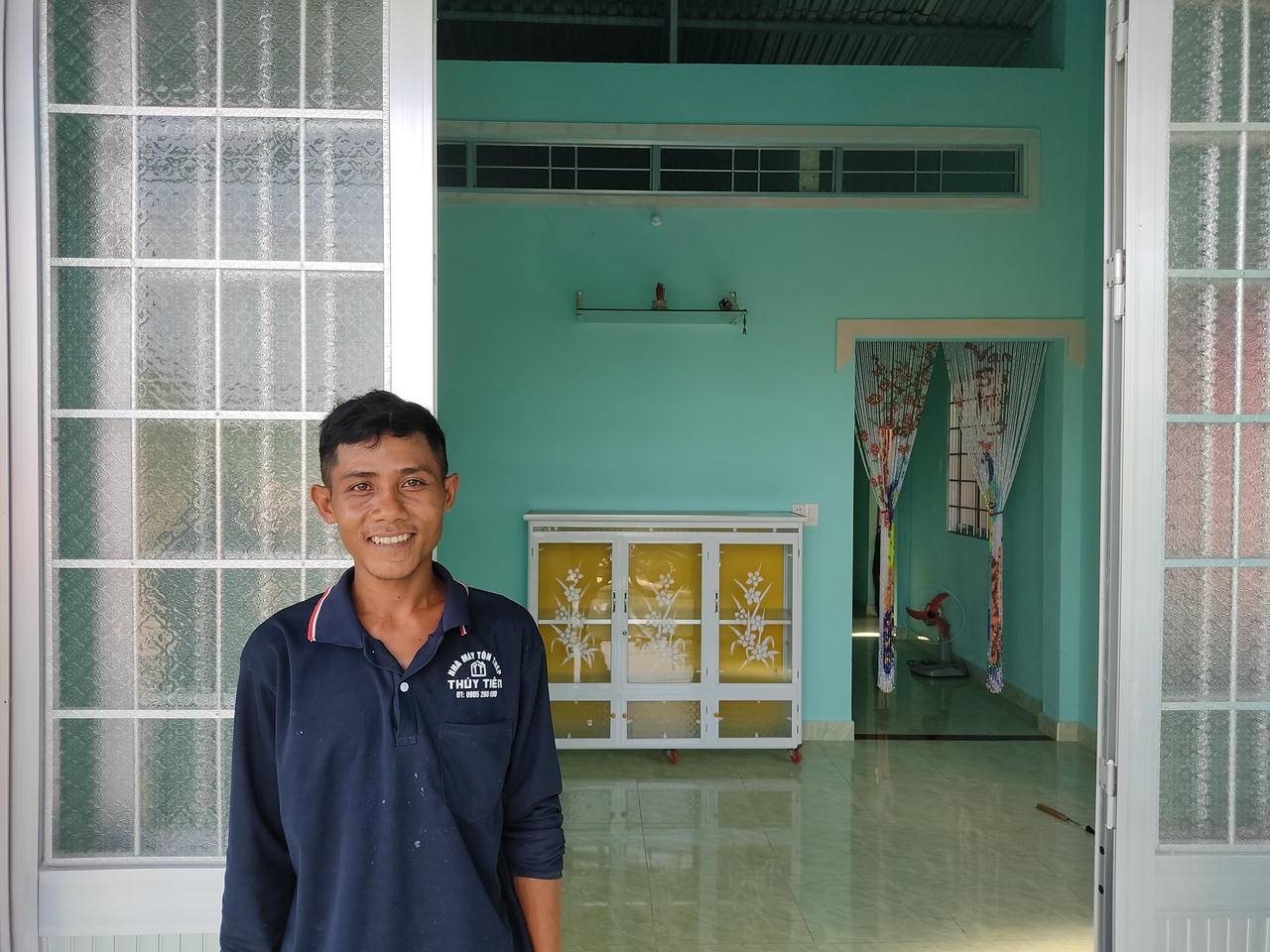 Gần đó là hoàn cảnh của ông Kim Ngọc Thêm (SN 1992, ngụ cùng địa phương) cũng không kém phần xót xa. Nhiều năm liền, vợ chồng ông Thêm cùng hai đứa con sống dưới “căn nhà” chỉ vỏn vẹn đúng tấm bạt nilon che đủ cái giường. Nhờ sự quan tâm, nắm bắt tình hình sát sao của chính quyền các cấp mà nay ông được ở căn nhà khang trang vừa xây xong hơn 1 tháng trước.