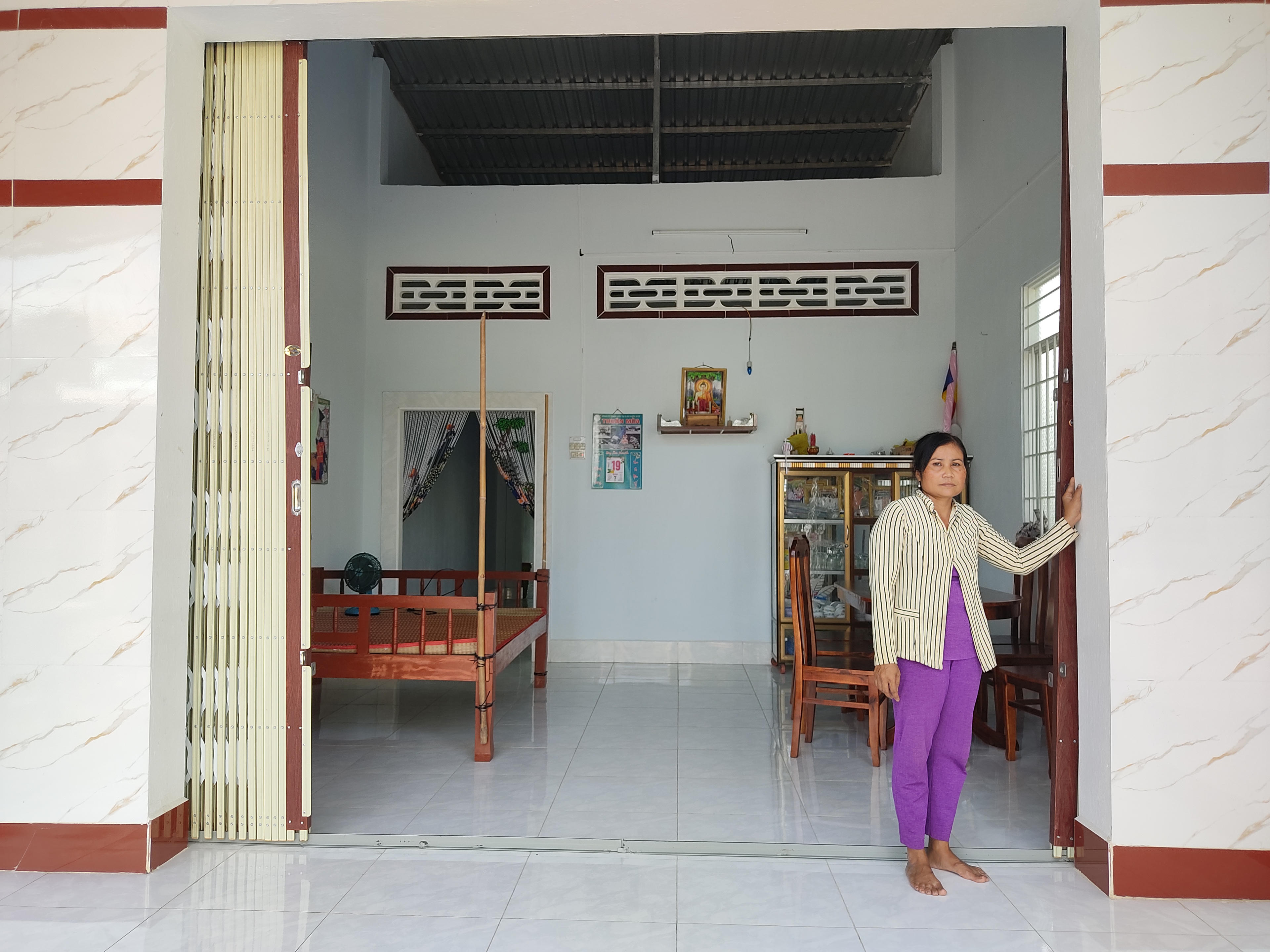 Như trường hợp của bà Kim Thị Mỹ Diện (SN 1984, ngụ ấp Chợ, xã Tân Sơn, huyện Trà Cú) là đồng bào dân tộc Khmer thuộc diện nghèo. Trước đây, hai vợ chồng bà sống tạm trên đất người quen trong căn nhà vách lá đã mục nát, xuống cấp trầm trọng. Chồng bà là lao động chính trong nhà, nhưng không may lại mắc bệnh tim. Cứ như vậy, cuộc sống chật vật, lao đao đó đã đeo bám vợ chồng bà Diện hơn 10 năm qua. Nhưng nhờ chính quyền địa phương, giờ đây gia đình bà Diện đã có mái ấm của riêng mình.