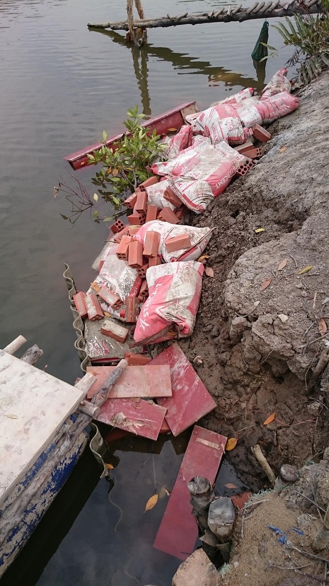 Các bị cáo Ẩn, Tú, Lang, Lớn và Tuân tiến hành ném 40 bao xi măng của bà Ngọc xuống đùng tôm làm hư hỏng hoàn toàn. Tiếp đến, vào sáng ngày 27/2, nhóm bảo vệ này quay lại chòi tôm của bà Ngọc tháo gỡ, quăng 4 khung sắt làm cột công trình xuống đùng tôm.