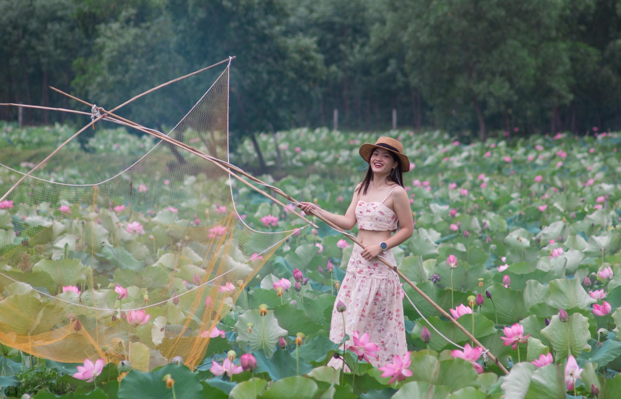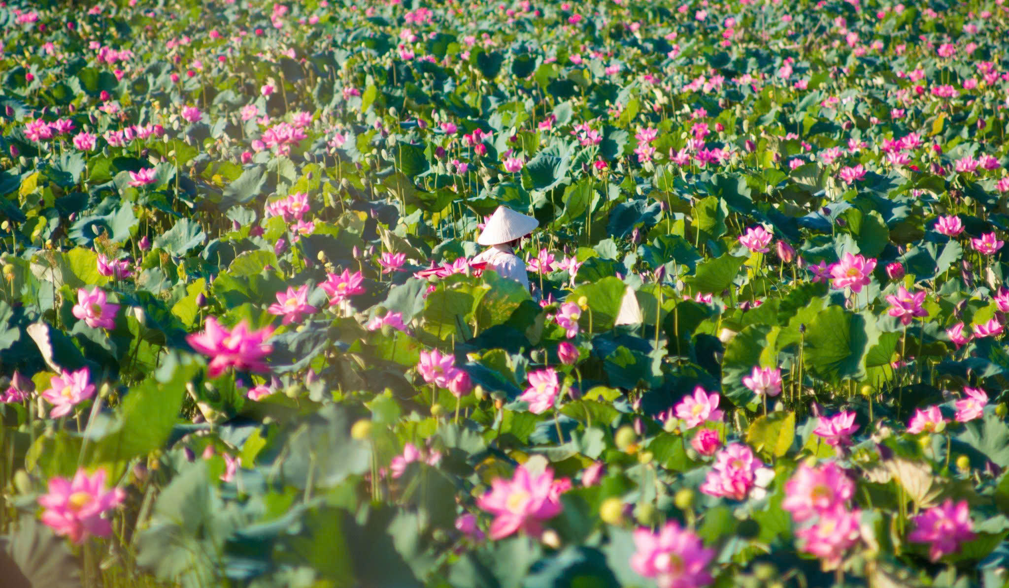 “Khung cảnh ở đây đẹp ngỡ ngàng, sen nở ngút mắt, hương thơm dịu nhẹ trong không khí trong lành khiến tôi cảm thấy thực sự bình yên”, chị Trang nói.