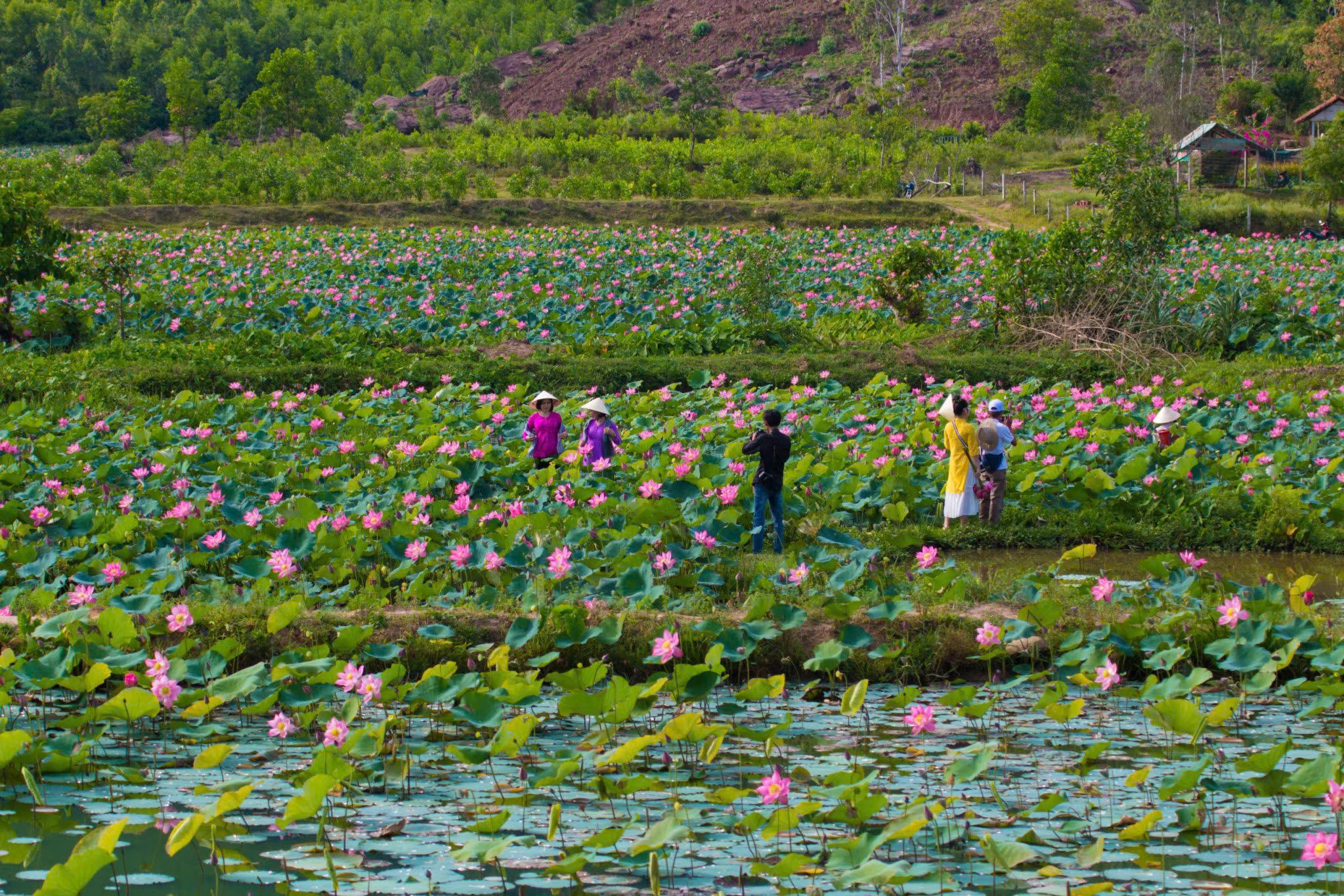 Đây là một trong những cánh đồng sen lớn nhất tỉnh Quảng Nam, với tổng diện tích khoảng 45ha, do gần 100 hộ dân địa phương cùng canh tác.
