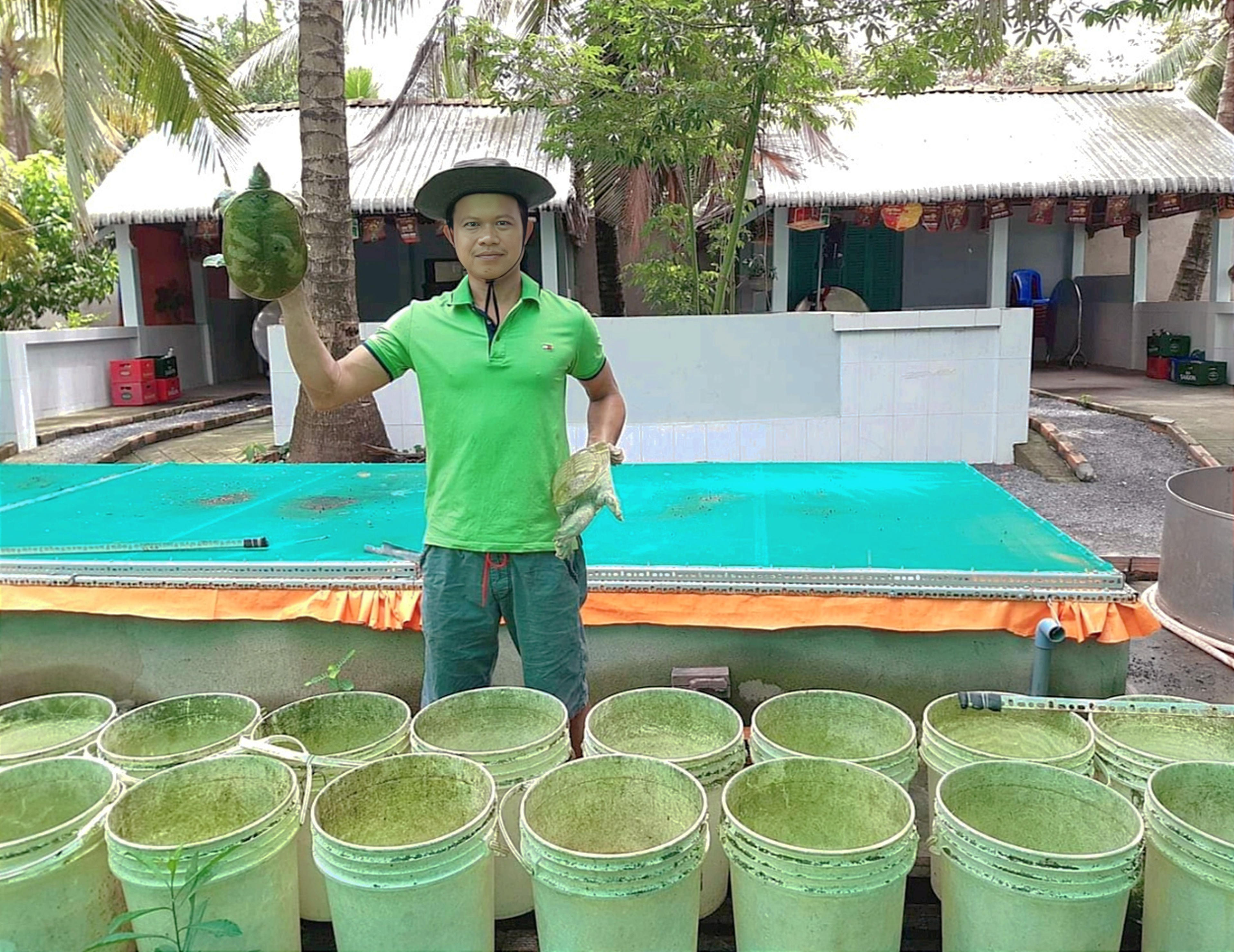 Năm 2023, ông Sơn còn cam kết bao tiêu đầu ra cho hàng trăm người nuôi ba ba thịt ở Đồng bằng sông Cửu Long để xuất bán đến các cơ sở, nhà hàng tại TP HCM, Hà Nội. Riêng về phần ông, những tháng cao điểm cung cấp ba ba thịt ra thị trường 40 - 60 tấn, thu về lợi nhuận trên 100 triệu đồng.