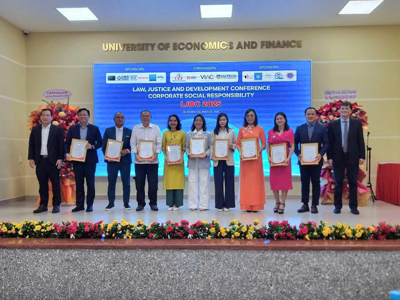 (PLVN) - Ngày 20/3, tại TP HCM, Trường Đại học Kinh tế - Tài chính TP HCM (UEF) phối hợp với Trung tâm trọng tài quốc tế Việt Nam (VIAC), Trường Đại học công nghệ TP HCM (HUTECH) đã tổ chức Hội thảo Quốc gia "Luật, Công lý và Phát triển" với chủ đề “Trách nhiệm xã hội của doanh nghiệp” (TNXHCDN). Hội thảo thu hút được sự quan tâm, tham gia của nhiều chuyên gia, nhà quản lý, luật sư, nhà khoa học cũng như học viên, sinh viên trên cả nước.