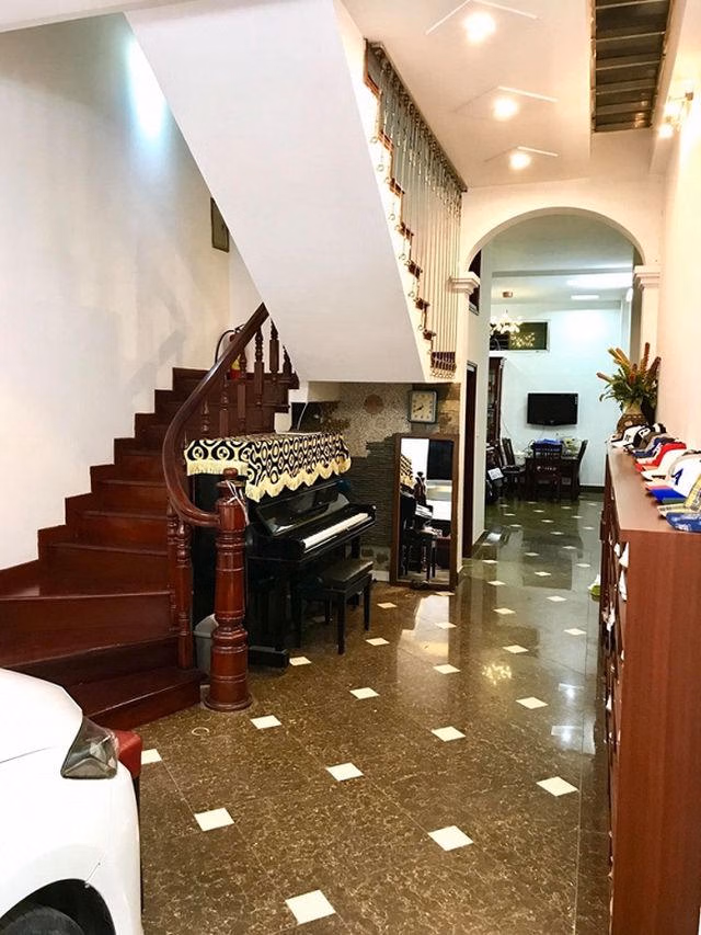 Chiếc đàn piano được đặt gọn gàng ở chân cầu thang.