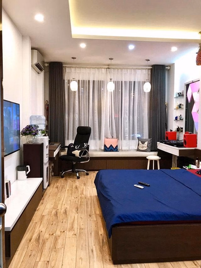 "Nhà này chính là gia đình em vẫn đang ở gần chục năm nay nhé. Mặt tiền hướng Đông Bắc sáng không bị nắng chiếu thẳng vào phòng, qua trưa mở cửa kính ban công ra đã có view bãi cỏ mát hết cả mắt do hệ mặt trời đã lướt về đằng đuôi. Lại cách đường xe tải con đê nên đường trước cửa nhà các bạn bé có thể thoải mái chơi đùa, tập xe các thứ...", Anh Vũ tiết lộ.