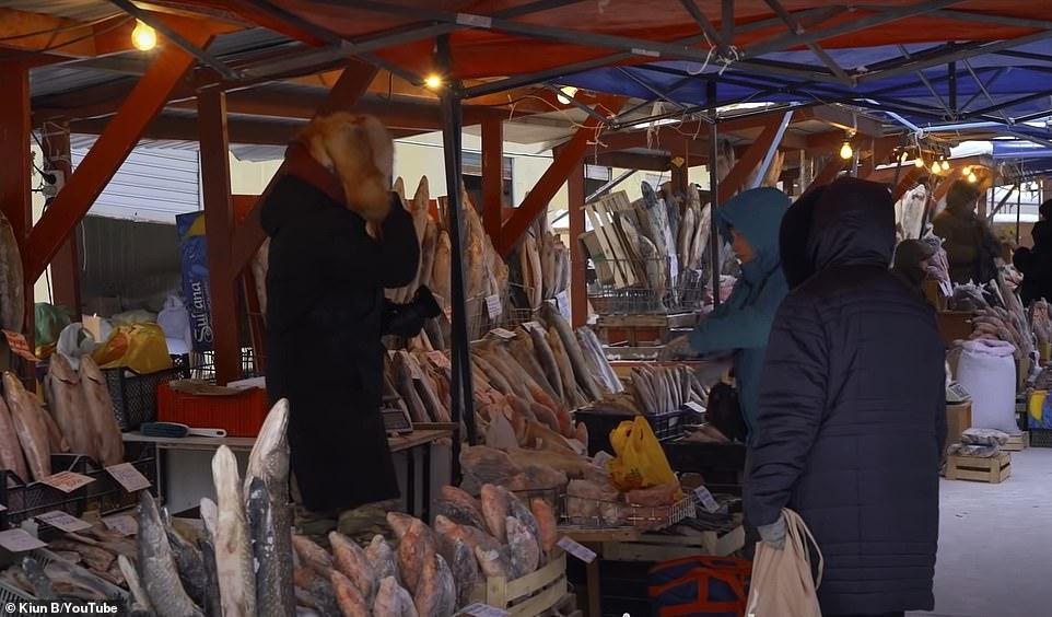 Sau khi mặc quần áo đủ ấm, Dayana đến khu chợ ngoài trời ở địa phương. Tại đây, những người bán hàng cũng mặc trang phục ấm áp nhất để làm việc suốt cả ngày.