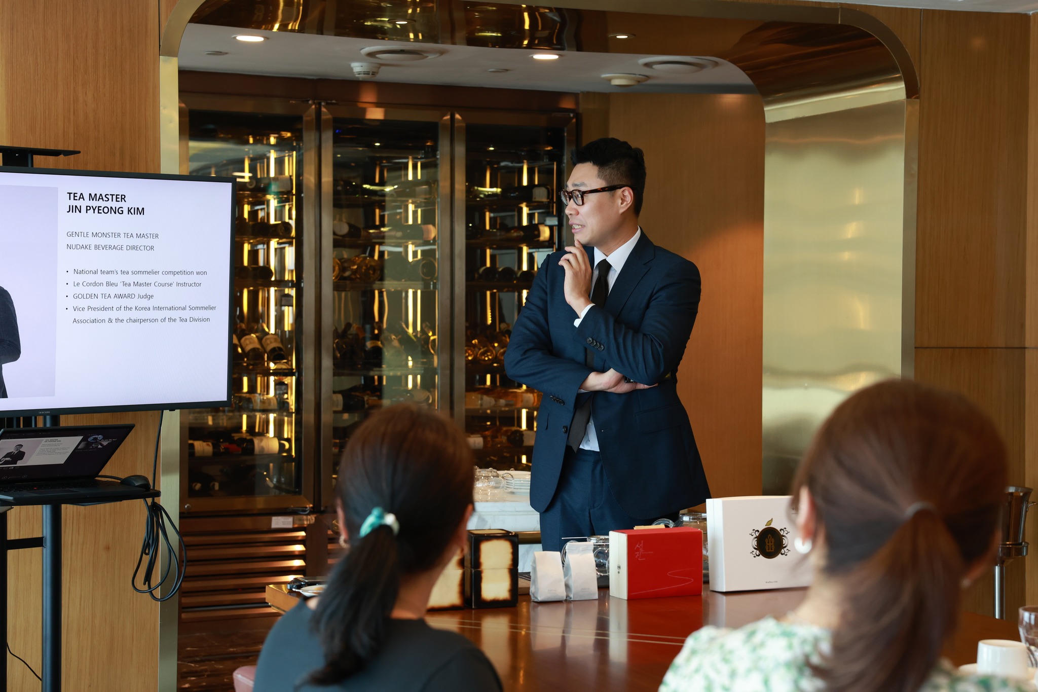 Trà sư Kim Jin Pyeong đã mang trải nghiệm văn hóa trà đạo Hàn Quốc đến Tuần Lễ Ẩm Thực Hàn Quốc. Những vị khách quý đã được chiêm ngưỡng nghệ thuật pha trà truyền thống Hàn và khám phá những câu chuyện, triết lý sâu sắc ẩn chứa trong từng tách trà và tận hưởng hương vị đặc trưng của các loại trà.