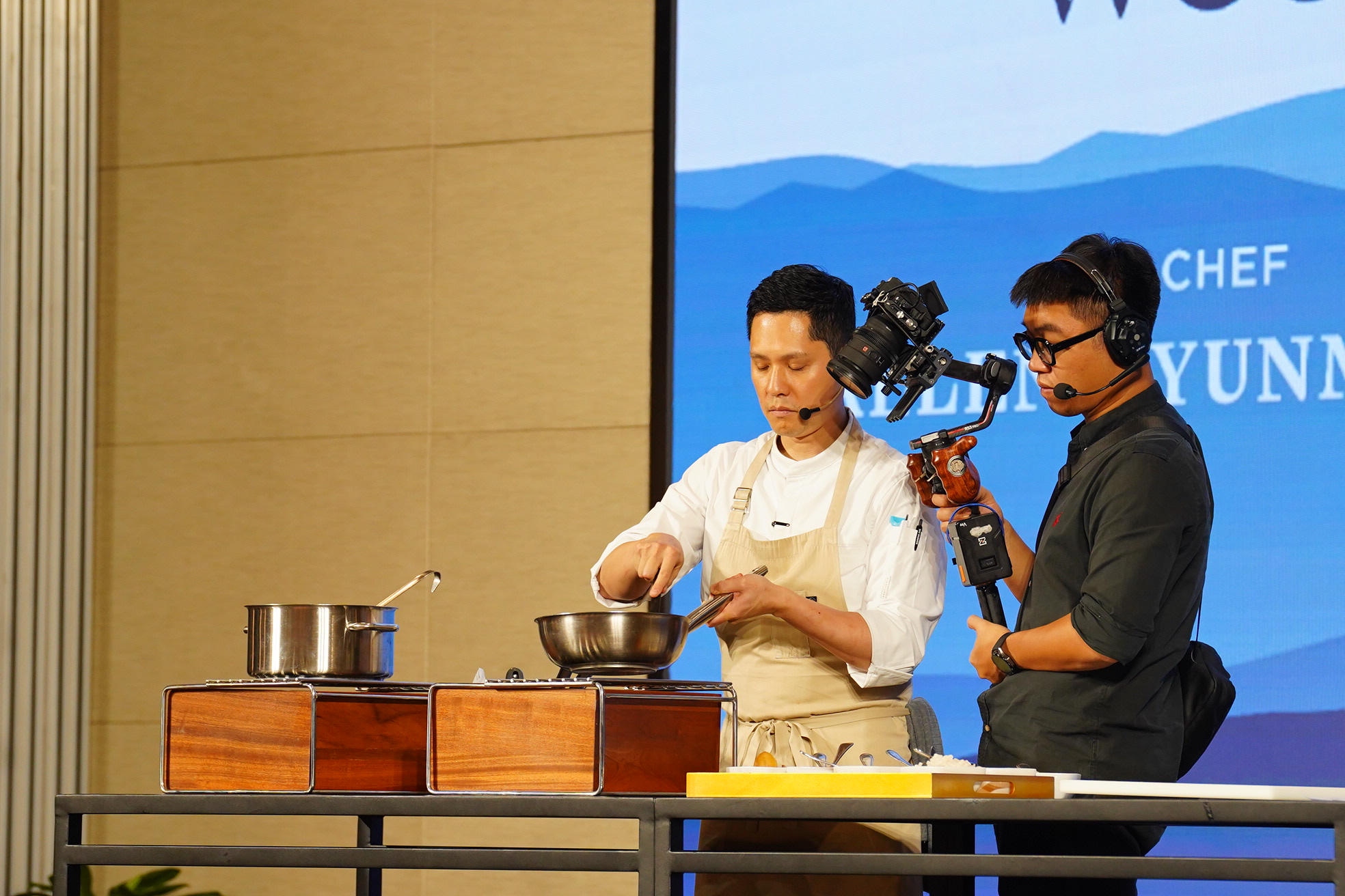 Màn trình diễn nấu ăn độc đáo của đầu bếp 2 sao Michelin Hyunmin Suh. |