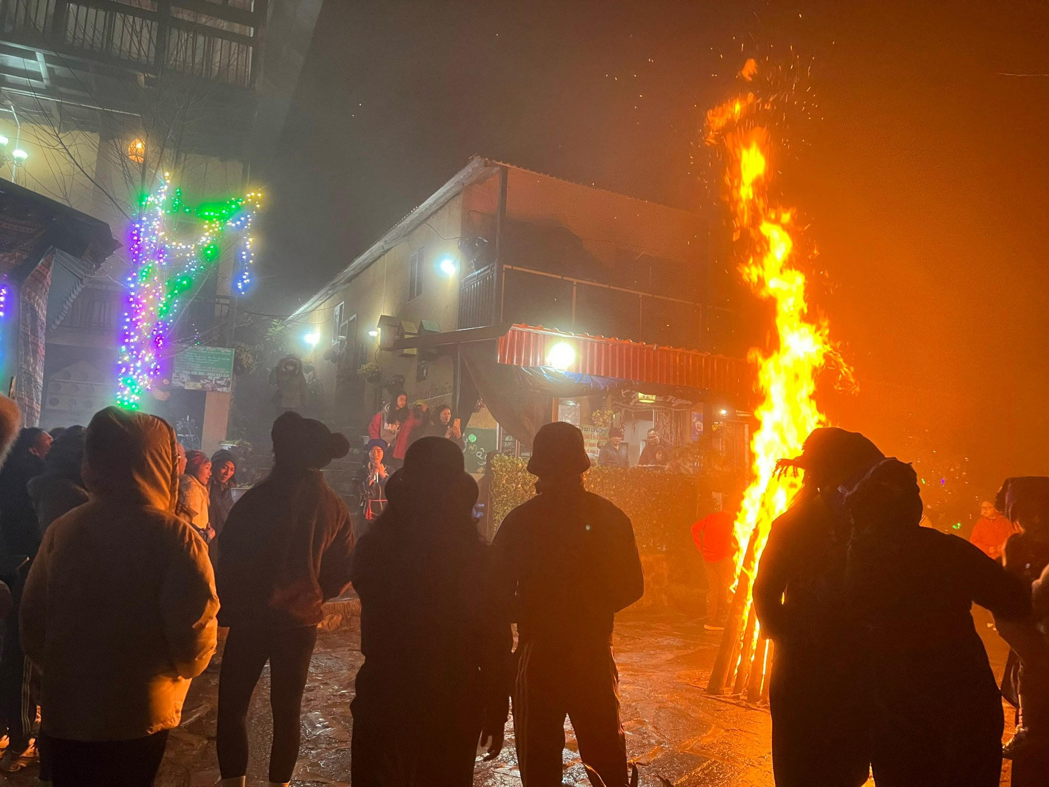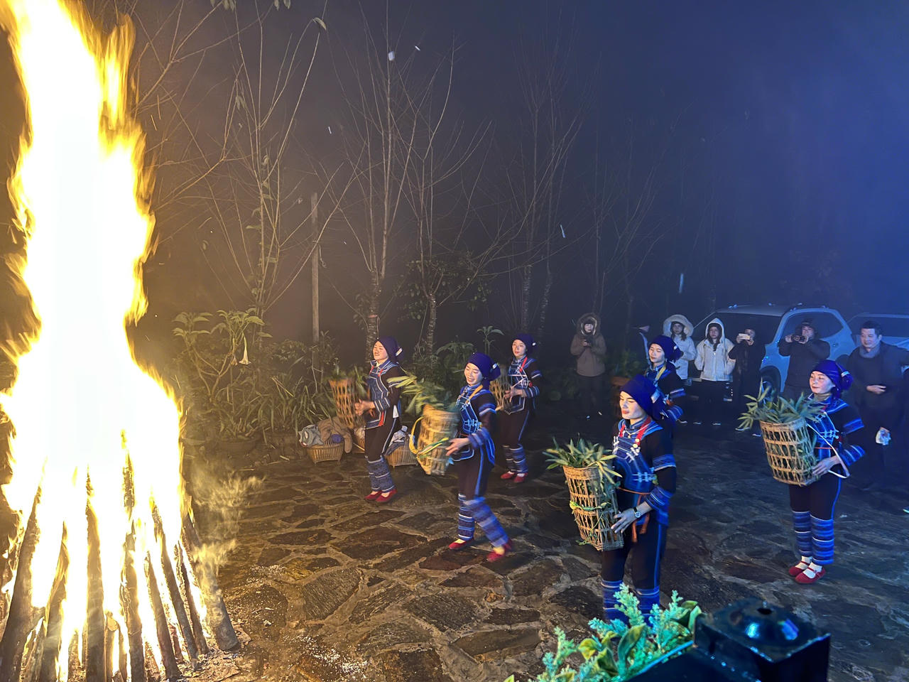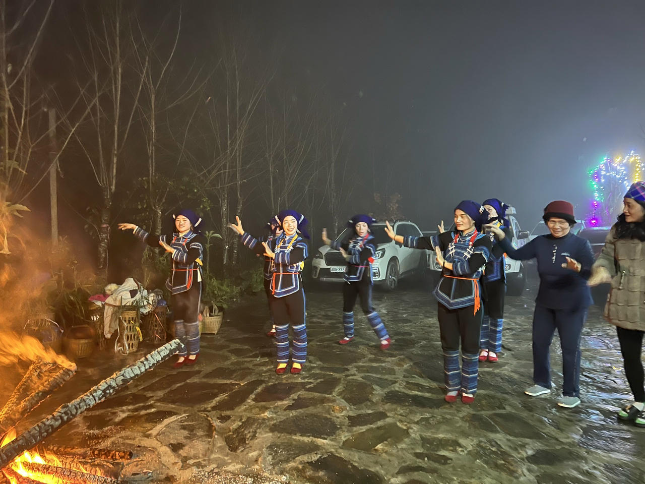 | Hoạt động đốt lửa trại và giao lưu văn nghệ với đội múa của bà con Dân tộc Hà Nhì |