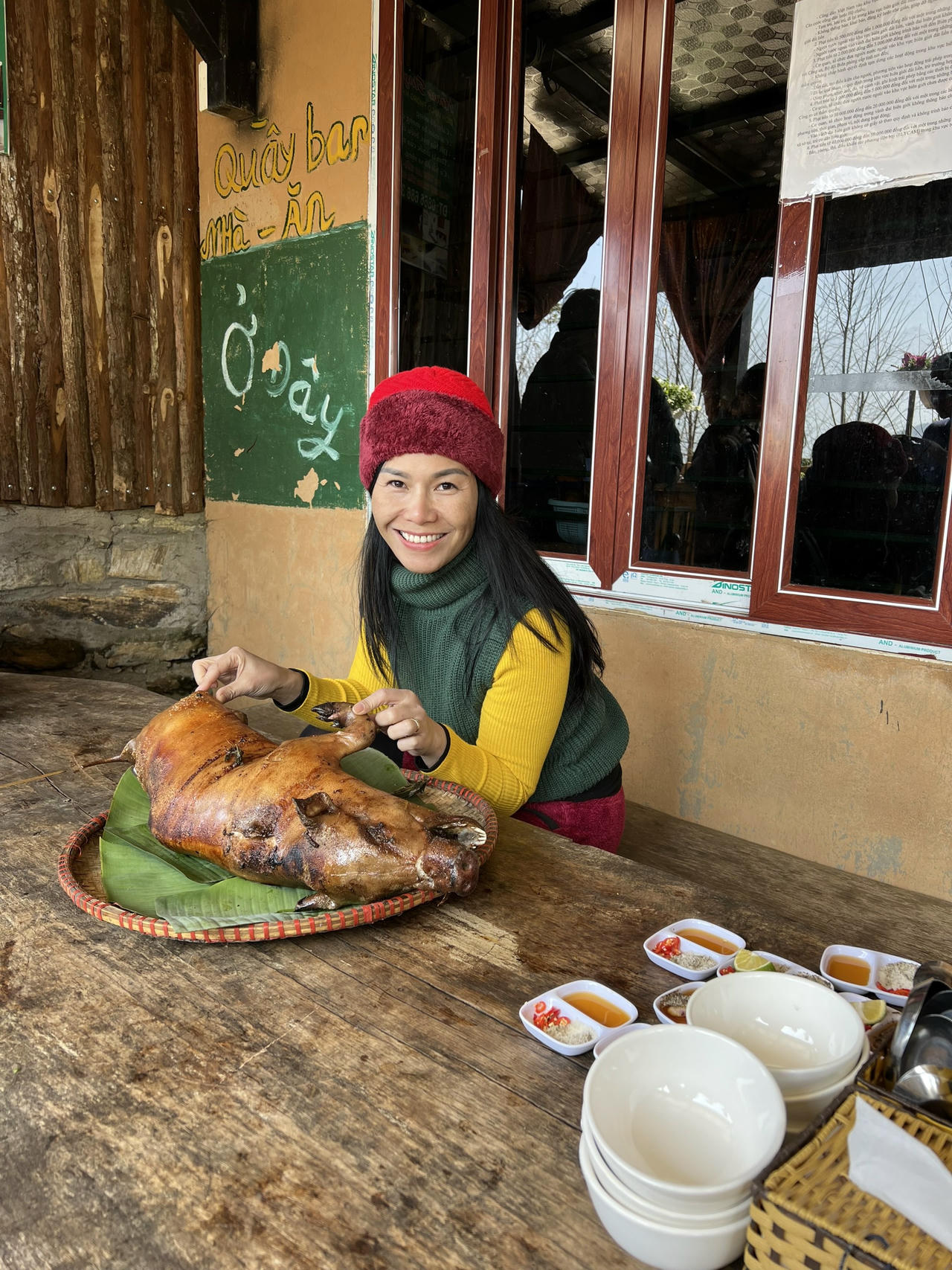 | Một du khách người Hà Nội rất thích thú với món ăn Tây Bắc |