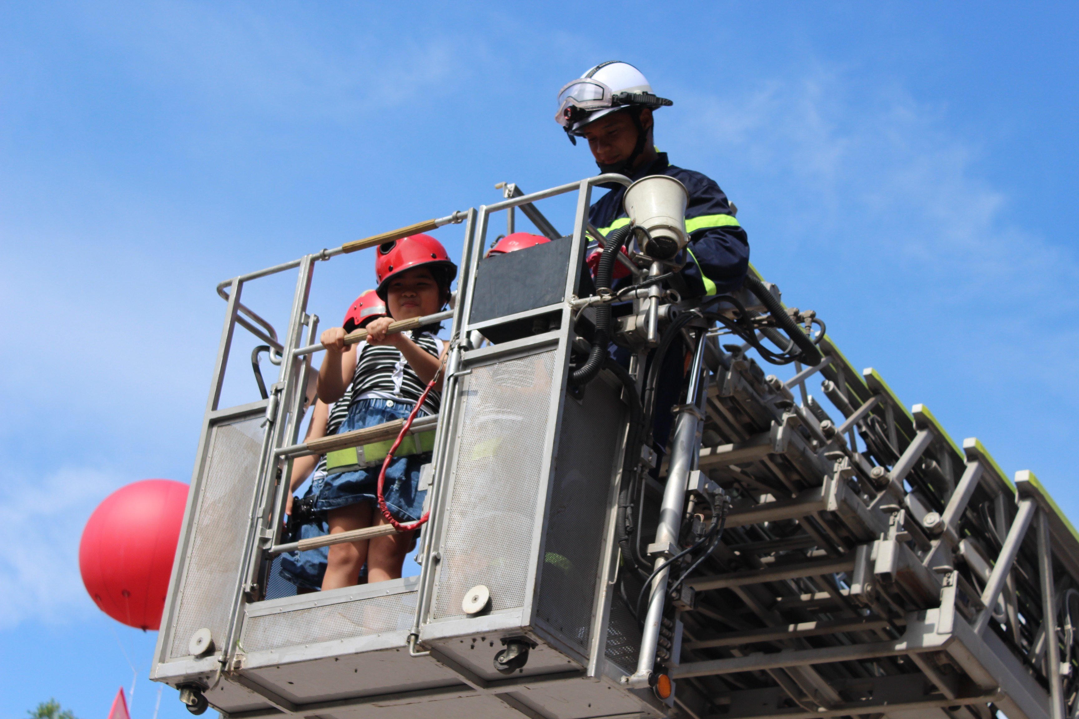 Trải nghiệm kỹ năng chữa cháy và thoát nạn trên các phương tiện phòng cháy chữa cháy chuyên dụng