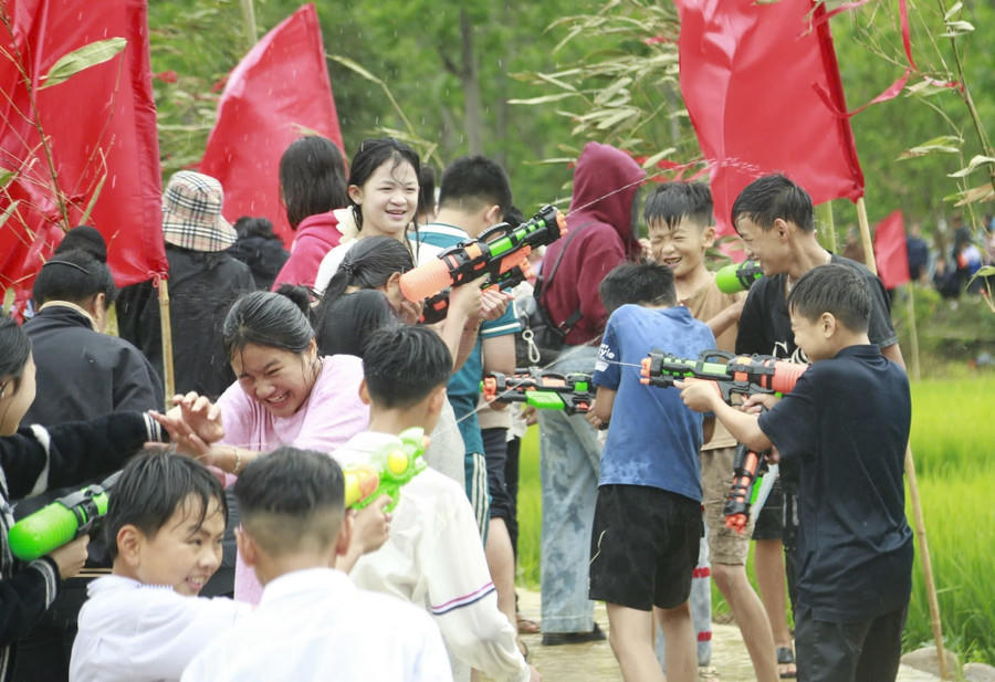 Người dân hào hứng tham gia các trò chơi dân gian tại Lễ hội Tết té nước. |