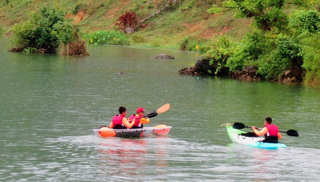 Lướt mình trên những khúc sông hiền hòa trong vắt, du khách sẽ được thưởng ngoạn cảnh quan rừng nhiệt đới, hệ thống núi non thơ mộng in bóng xuống dòng sông. Điểm đặc biệt là một số thuyền Crystal Kayak trong suốt sẽ đem đến cho du khách trải nghiệm độc đáo chưa từng có khi được ngắm xuống đáy sông qua dòng nước xanh trong vắt.