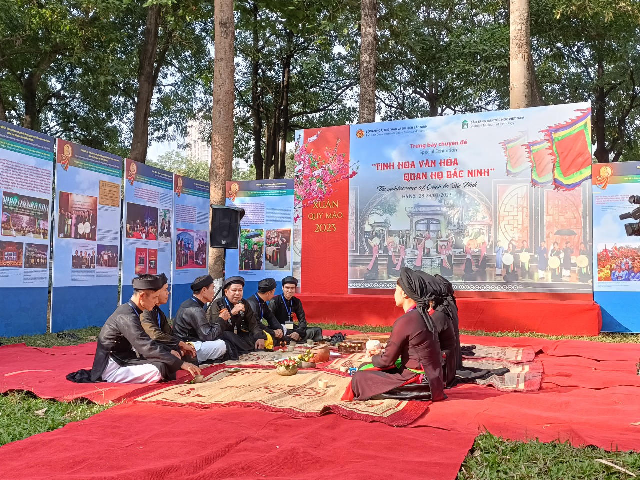 Từ giai điệu, ca từ, trang phục đến lề lối, lễ nghĩa của người quan họ đều được giới thiệu tại không gian này. Công chúng thích khám phá sẽ được trải nghiệm mặc thử trang phục quan họ, têm trầu cánh phượng và nghe các nghệ nhân, anh hai, chị hai chia sẻ những câu chuyện.