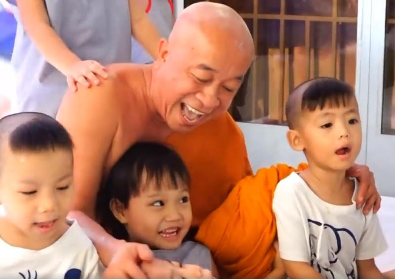 Lần ấy, người viết đến chùa, thăm sư thầy và các em, được đi trên chuyến xe do thầy lái để đi đón các “con” đi học về. Thầy kể, hễ bận pháp sự, bận đi xa thì thôi, nhưng nếu ở chùa, thầy vẫn luôn muốn tự đi đón các “con” mình. Muốn được thấy ánh mắt lấp lánh, tiếng reo vui của chúng khi thấy “cha” ra đón, chúng sà vào lòng cha và ríu rít kể chuyện ở trường, ở lớp… Nhìn vào đôi mắt ấm áp, đầy trìu mến, độ lượng, thương yêu của thầy dành cho những đứa trẻ ấy, mới thấy tình phụ tử vĩ đại không cần đến máu mủ, ruột rà.