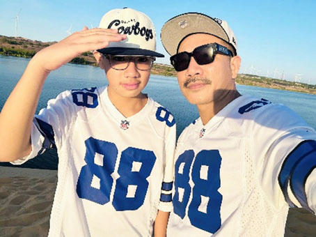 Diễn viên Bá Cường và con trai trong một chuyến đi chơi. |