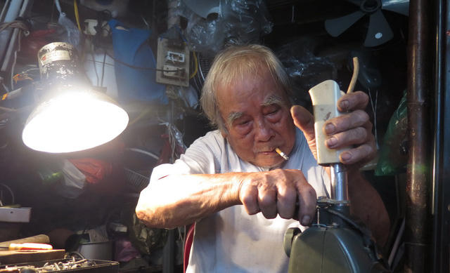 Ông Nguyễn Văn Vận làm nghề sửa quạt ở khu ô vòm. Rất nhiều người nghèo chọn nơi đây kiếm sống như ông - Ảnh: QUANG THẾ