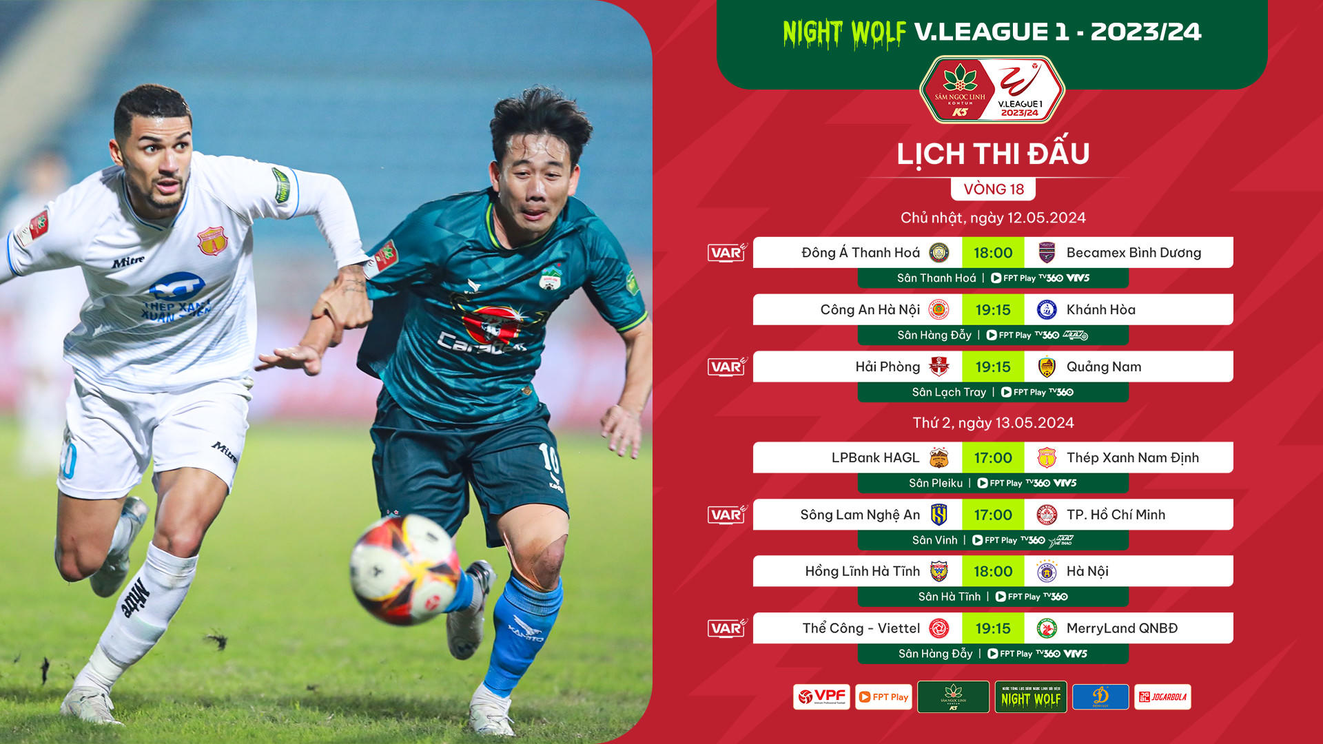 Cả 4 trận đấu còn lại của vòng 18 cùng diễn ra vào thứ 2 (13/5). Đáng chú ý nhất là sự trở về của các cầu thủ từng thi đấu lâu năm cho Hoàng Anh Gia Lai giờ khoác áo Nam Định. Đó sẽ cuộc đối đầu nhiều cảm xúc của Văn Toàn, Tuấn Anh, Hồng Duy.
