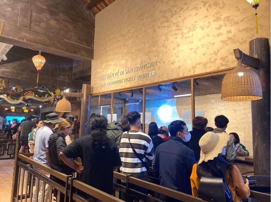 Dù lượng khách tăng nhanh trong buổi sáng, công tác tổ chức tại Khu du lịch sinh thái Tràng An được triển khai khá bài bản.
