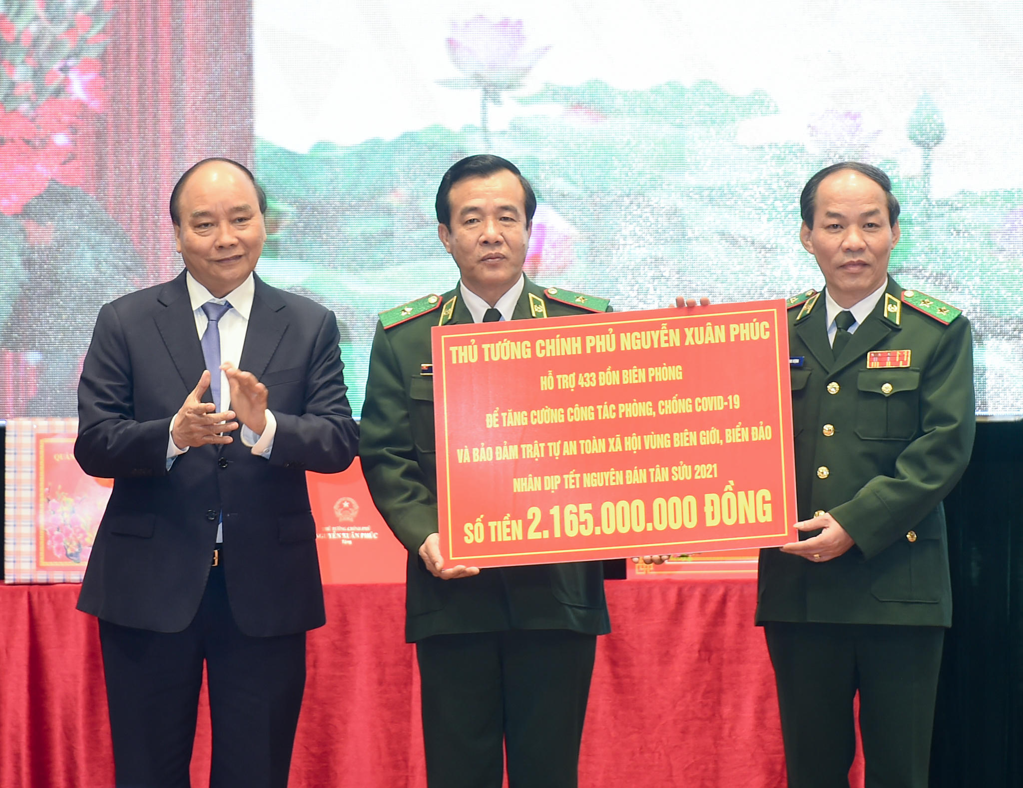 Chuyển lời thăm hỏi ân cần của lãnh đạo Đảng, Nhà nước đến cán bộ, chiến sĩ BĐBP khắp mọi miền Tổ quốc, Thủ tướng Nguyễn Xuân Phúc chia sẻ với những đồng chí đang chịu đựng rét mướt, khó khăn ở những nơi xa xôi, hải đảo, bờ biển, biên giới. Thủ tướng đánh giá cao những thành tích lớn lao mà lực lượng BĐBP đã đạt được, nhất là tổ chức quản lý chặt chẽ, kịp thời phát hiện, xử lý hiệu quả các vấn đề phức tạp nảy sinh, góp phần giữ vững chủ quyền lãnh thổ, an ninh chính trị khu vực biên giới, vùng biển.