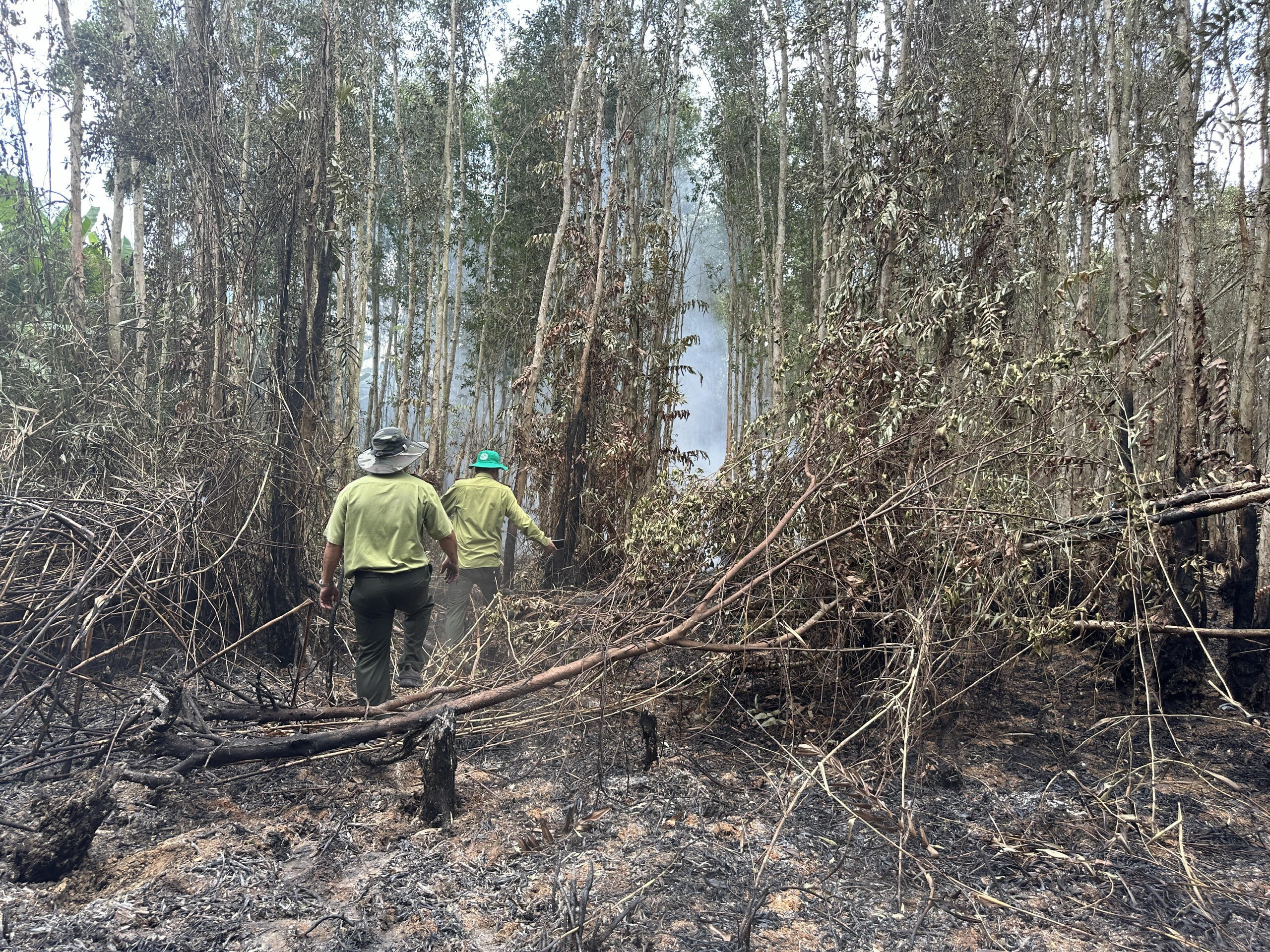 Ông Huỳnh Quốc Việt - Ủy viên dự khuyết BCH TW Đảng, Phó Bí thư Tỉnh ủy, Chủ tịch UBND tỉnh; ông Lê Văn Sử - Phó Chủ tịch UBND tỉnh; ông Phan Hoàng Vũ - Giám đốc Sở Nông nghiệp và Phát triển nông thôn tỉnh Cà Mau đã đến hiện trường trực tiếp chỉ đạo các ngành chức năng địa phương huy động các lực lượng, phương tiện, dụng cụ chữa cháy cùng với lực lượng hỗ trợ Quân khu 9 và lực lượng tại chỗ của Đội Quản lý đất Quốc phòng (Nông trường 402), triển khai các biện pháp chữa cháy…