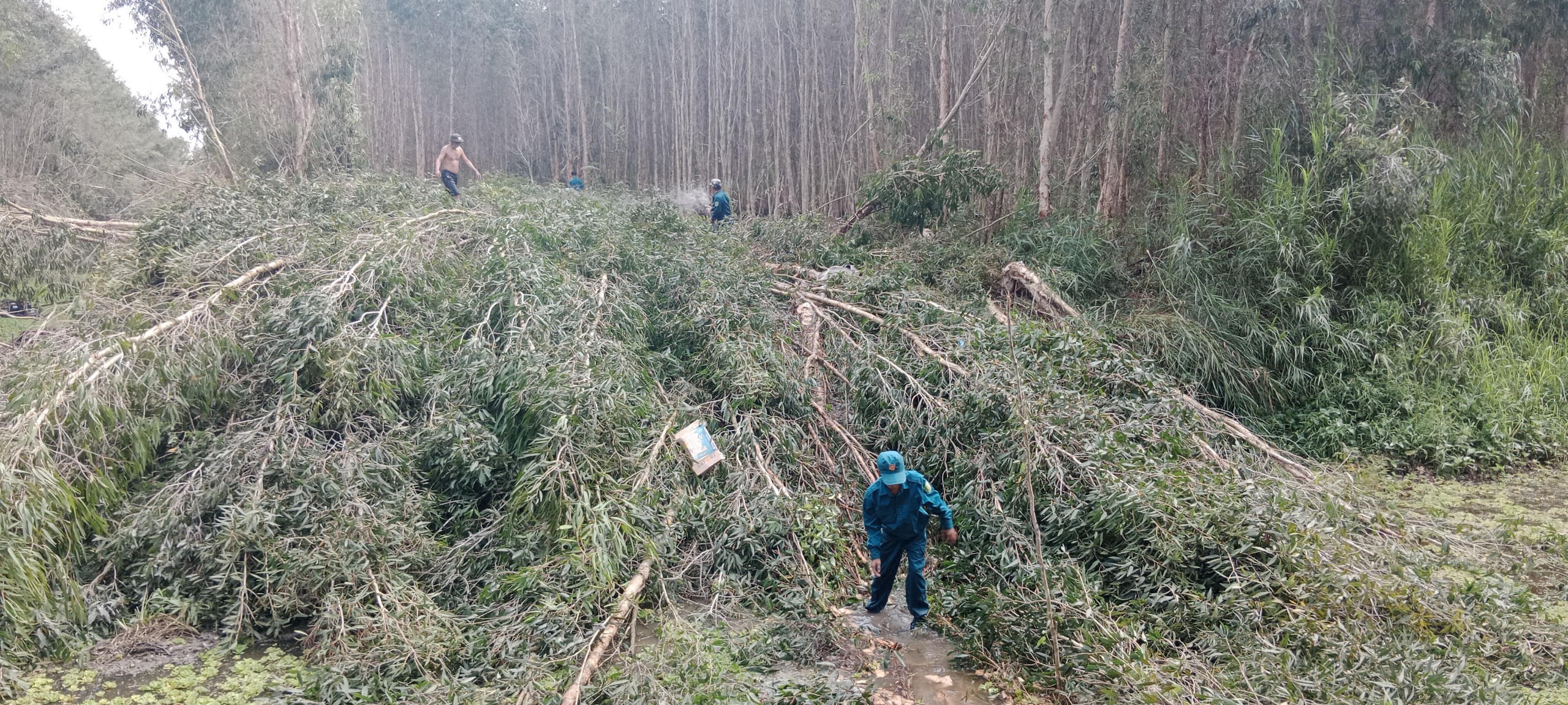 Nhận tin báo, Hạt Kiểm lâm huyện Trần Văn Thời chỉ đạo, điều động 1 tổ máy bơm gồm 6 lực lượng đến ngay hiện trường cùng với lực lượng tại chỗ, các đơn vị lân cận: xã Trần Hợi, xã Khánh Bình Tây Bắc, Khánh Bình Tây, lực lượng dân quân tự vệ... tiếp cận đám cháy, triển khai chữa cháy.