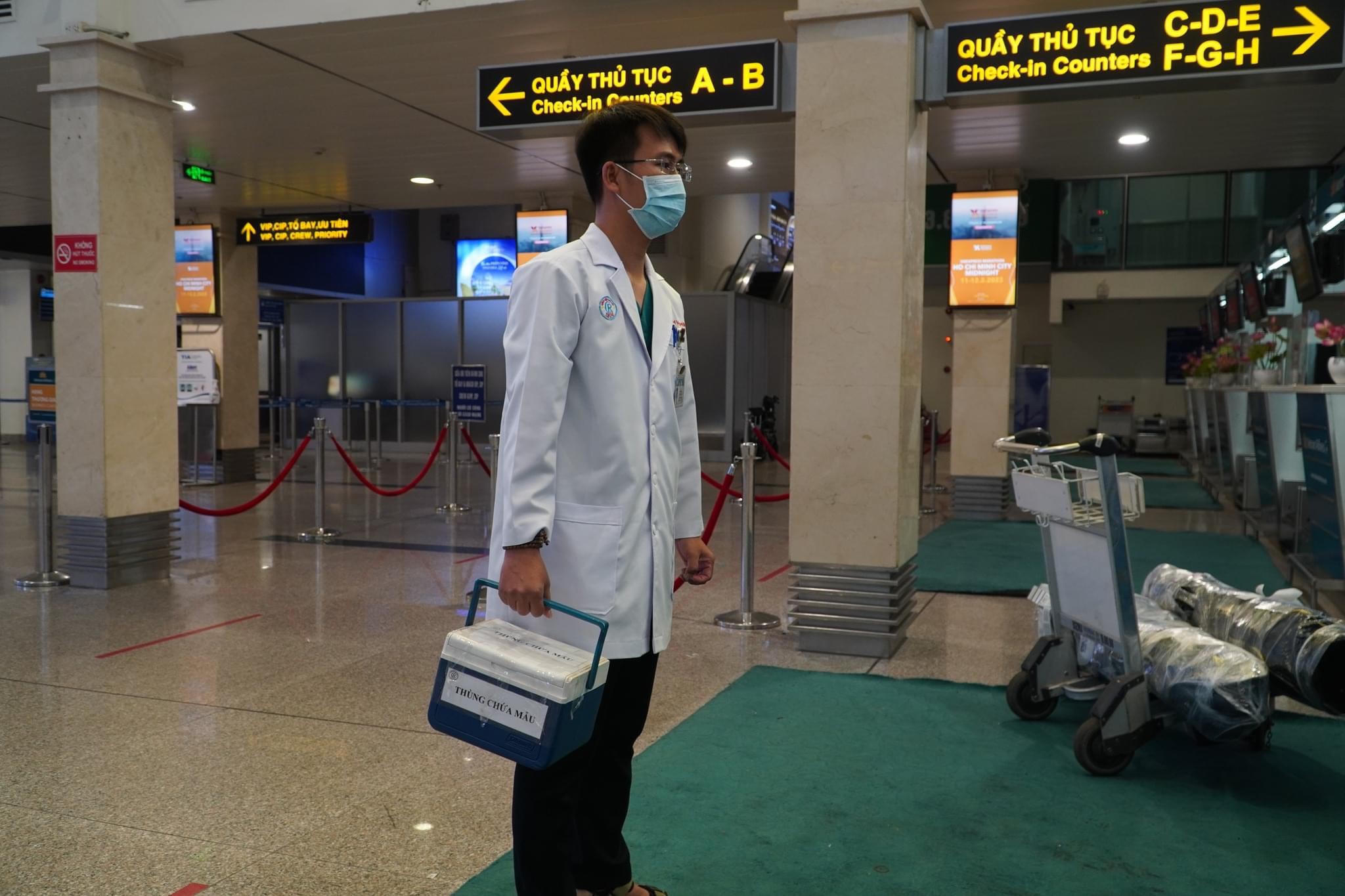 Chuyển mẫu máu của người hiến ra Hà Nội. Ảnh: BV |