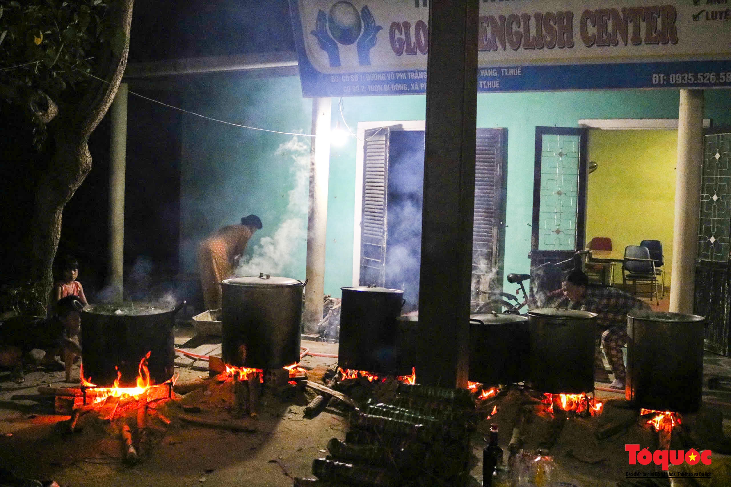 Người dân xã Phú Hồ đã thức trắng cả đêm hôm qua đến nay để vừa làm, vừa nấu bánh cho kịp tiến độ. Những "nồi bánh yêu thương" không ngừng tắt lửa, liên tục ra lò.