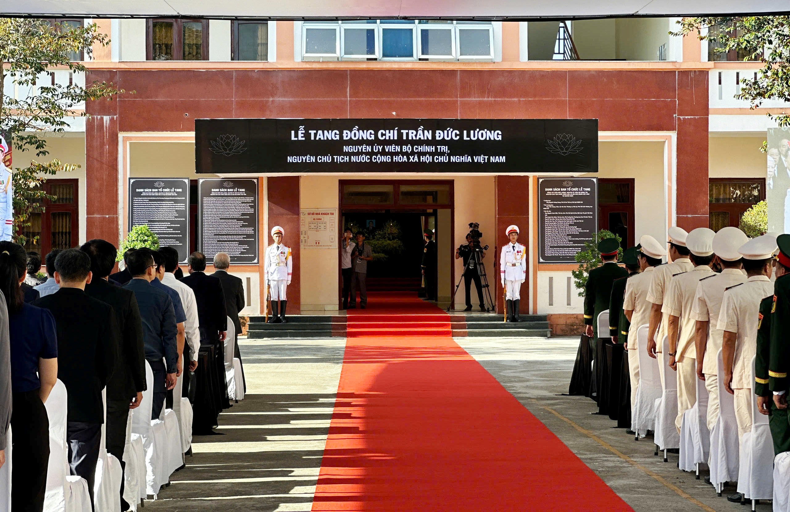 Không khí trang nghiêm bao trùm khuôn viên tang lễ viếng nguyên Chủ tịch nước Trần Đức Lương. |
