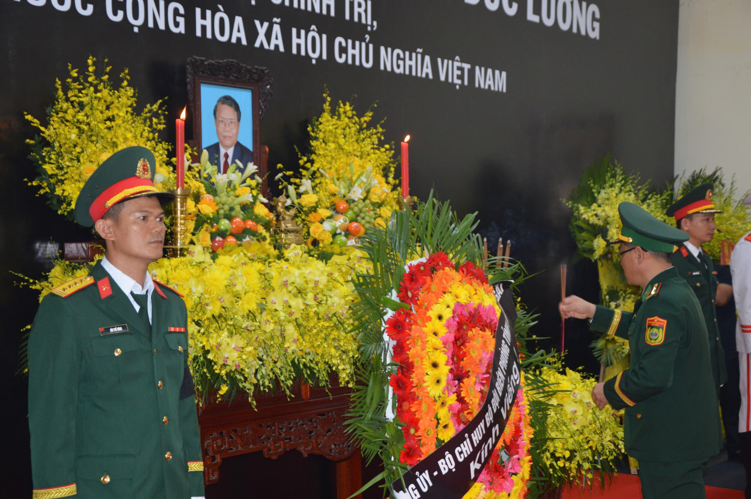 Các lực lượng vũ trang tỉnh Quảng Ngãi viếng nguyên Chủ tịch nước Trần Đức Lương. |