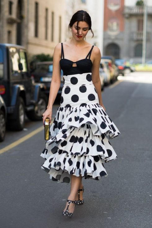 Nếu dũng cảm như những cô gái Ý, bạn cứ mạnh dạn kết hợp chân váy bèo nhún với corset hoặc áo hai dây bó sát.