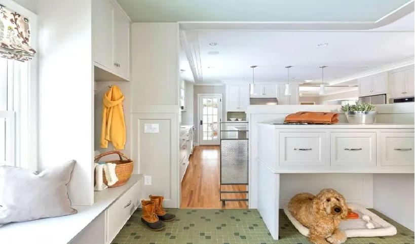 Chuồng cho thú cưng có thể tích hợp với đồ nội thất để tạo cảm giác hài hòa, liền mạch. Ví dụ, bạn có thể tích hợp chuồng với bàn đảo nhà bếp hoặc tủ ở phòng giặt sấy.