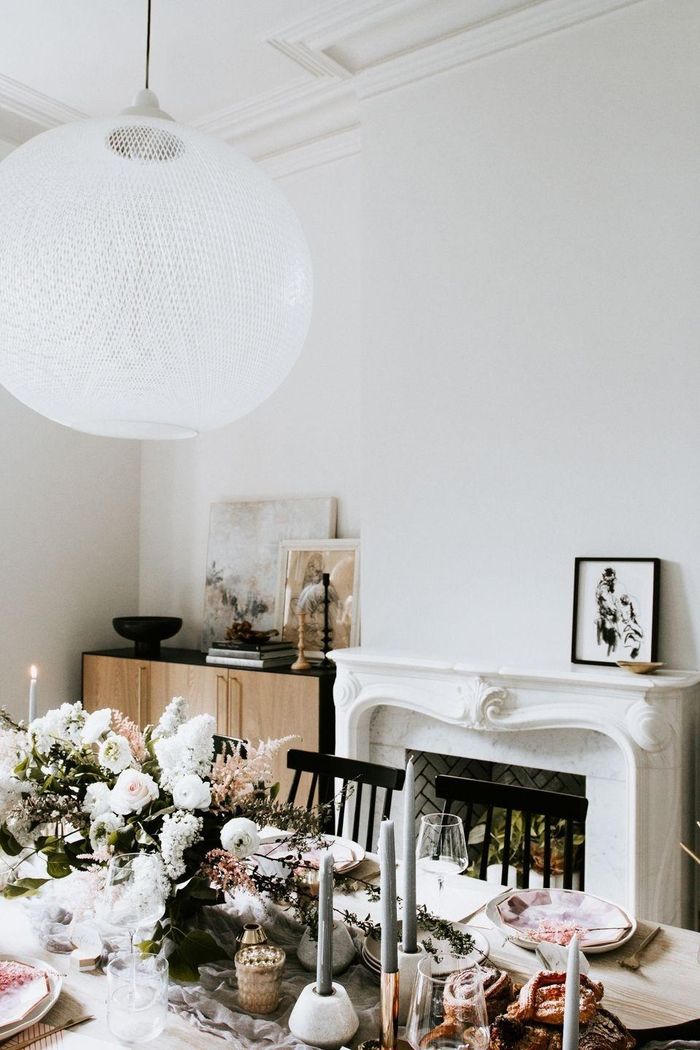 Ngoài màu đỏ rực rỡ, bạn có thể trang trí bàn ăn với một bảng màu nhạt, nhẹ nhàng.