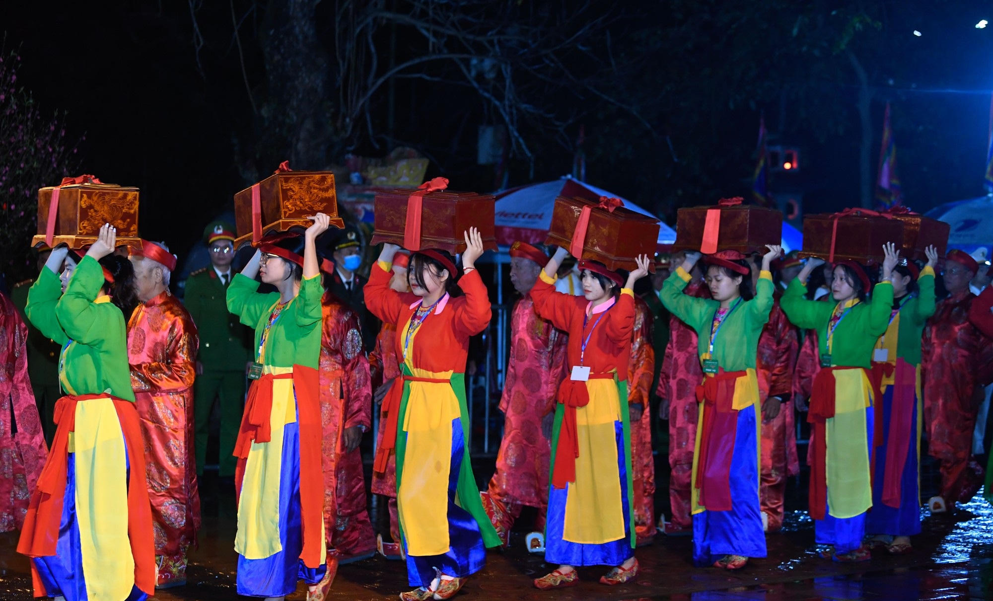 Nghi thức dâng lễ trước giờ Khai ấn. (Ảnh: Thế Đại) |