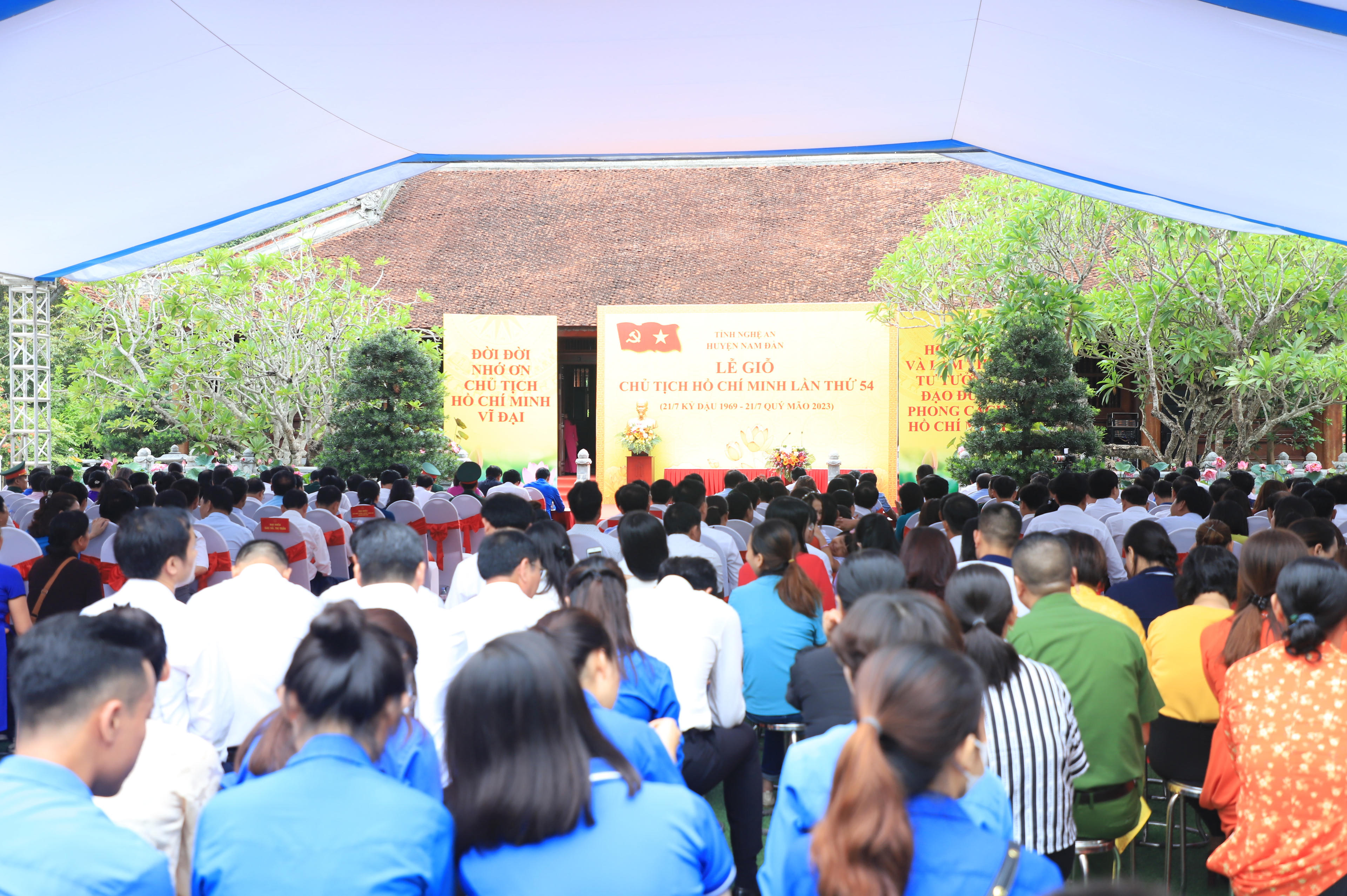 Trong giờ phút thiêng liêng của Lễ giỗ Chủ tịch Hồ Chí Minh lần thứ 54, các đồng chí lãnh đạo tỉnh Nghệ An, huyện Nam Đàn, đại biểu các dòng họ Nguyễn Sinh, Hoàng Xuân, Hà và đông đảo các tầng lớp nhân dân đã thành kính dâng lên Người những nén tâm hương thơm nhất, những lời nguyện cầu tốt đẹp nhất, tình cảm trong sáng, sâu sắc và thiết tha nhất để bày tỏ lòng biết ơn vô hạn đối với Chủ tịch Hồ Chí Minh.