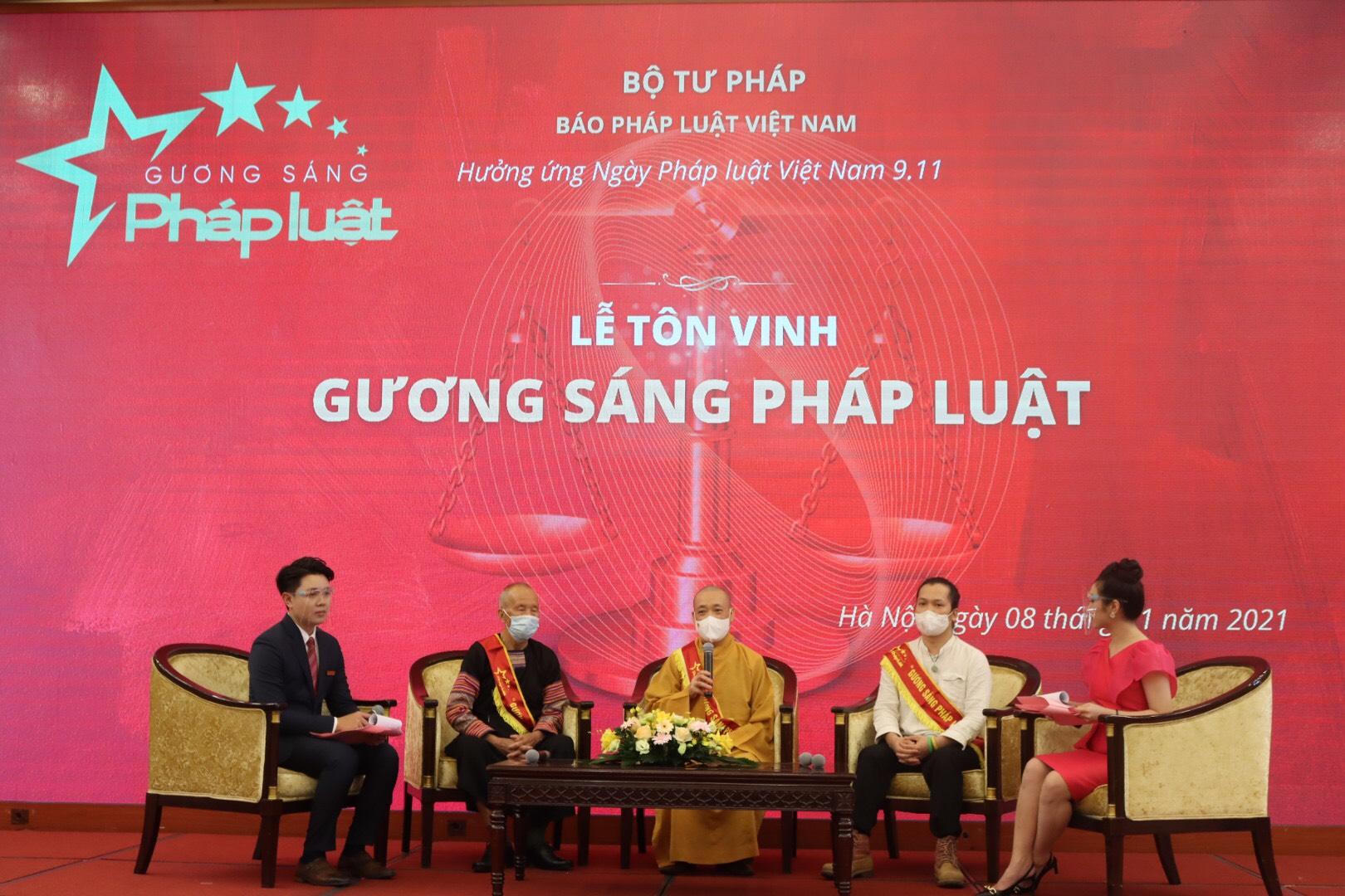 Trong không khí trang trọng và xúc động của buổi lễ, đại diện Ban Chỉ đạo đã trao tặng hoa, cúp, Giấy chứng nhận, ruy băng của Chương trình cho 40 Gương sáng Pháp luật. Do khó khăn vì dịch bệnh, một số nhân vật được vinh danh “Gương sáng Pháp luật 2021" đã không thể trực tiếp tham dự buổi Lễ.