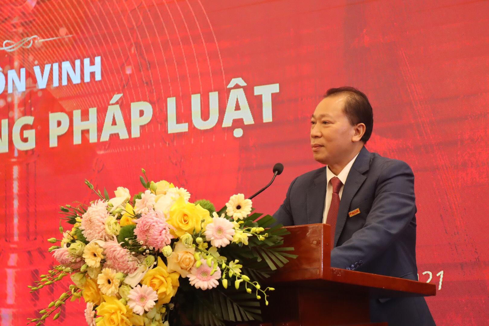 Thứ trưởng Nguyễn Thanh Tịnh nhấn mạnh, trong chuỗi các sự kiện hưởng ứng Ngày Pháp luật Việt Nam năm 2021, có điểm nhấn nổi bật chính là Chương trình tôn vinh Gương sáng Pháp luật.