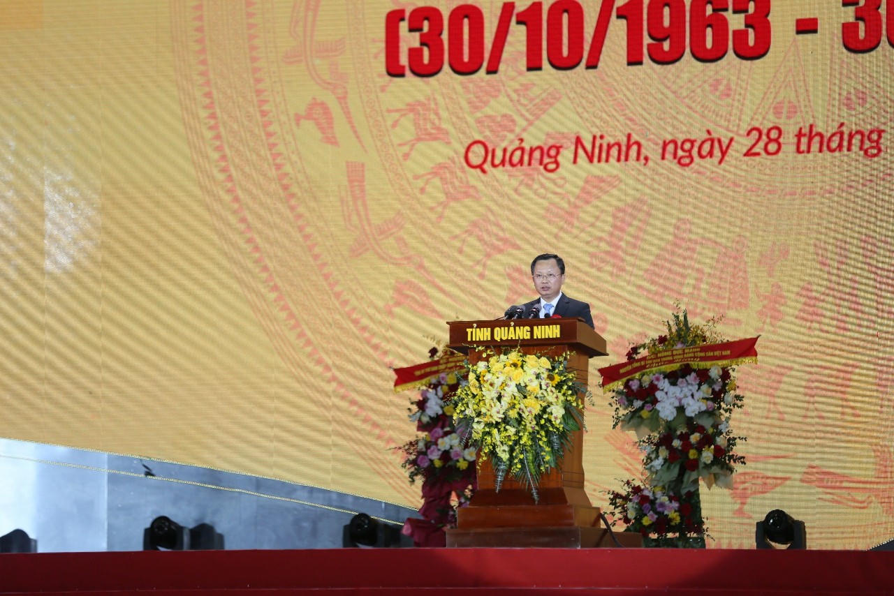 Trước đó, đọc diễn văn tại buổi lễ, Bí thư tỉnh Quảng Ninh - ông Nguyễn Xuân Ký nêu rõ: 60 năm qua, Quảng Ninh đã giành được những thành tựu to lớn, nhiều mặt nổi bật, mang tính tiên phong và đột phá, đóng góp quan trọng vào sự nghiệp xây dựng chủ nghĩa xã hội và bảo vệ Tổ quốc, đổi mới và phát triển đất nước. Nhìn tổng thể, từ một tỉnh còn yếu kém phải dựa vào hỗ trợ của Trung ương Quảng Ninh đã “vươn lên trở thành một trong những tỉnh đi đầu trong công cuộc đổi mới sáng tạo của vùng đồng bằng Bắc Bộ, một cực tăng trưởng của khu vực phía Bắc”.