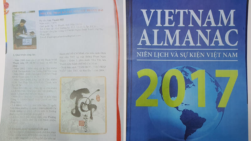 “Tôi là tác giả duy nhất, chủ sở hữu hợp pháp của tác phẩm này. Năm 2010, tôi được vinh danh là kỷ lục gia Việt Nam “Người phát hành tranh chữ thư pháp vẽ tay nhiều nhất”, ông Hải nói. Trong một cuốn sách có tên Vietnam Almanac 2017 (sách ghi các sự kiện Việt Nam năm 2017 - NV) cũng có in hình chữ “Tết” cách điệu này trong phần nói về ông Hải.