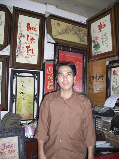 Theo ông Hải, chữ “Tết” cách điệu mà Cty Senko (một DN chuyên sản xuất các sản phẩm đồ gia dụng điện tử) dùng trong các pano áp phích quảng cáo mới đây, là “tác phẩm nghệ thuật thư pháp” được ông sáng tạo năm 2009.