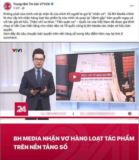 Mới đây, báo điện tử VTV và Trung tâm Tin tức VTV24 đưa tin ca khúc Tiến quân ca - Quốc ca đã được gia đình nhạc sĩ Văn Cao hiến tặng cho nhân dân và Nhà nước nhưng lại bị BH Media xác nhận sở hữu bản quyền.