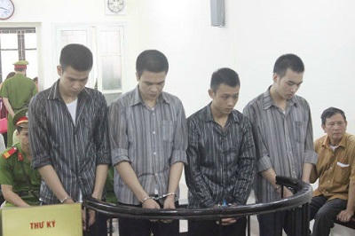 Tại phiên xử sơ thẩm ngày 17/9/2014, Hội đồng xét xử cho rằng các bị cáo đã dùng gậy, dao tập trung đánh vào đầu bị hại (là nơi trọng yếu, dễ dẫn đến hậu quả chết người) nên đã tuyên phạt Phúc, Tuấn Anh, Thanh, Thành về tội “Giết người”. Phúc bị cho là người khởi xướng, cầm đầu và thực hiện tội phạm, nhưng thời điểm thực hiện chưa đủ 18 tuổi nên bị phạt 16 năm tù; Tuấn Anh bị phạt 18 năm tù; Thanh bị phạt 13 năm tù và Thành bị phạt 10 năm tù.