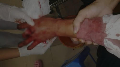 Vụ việc khiến ông Nguyễn Đoàn Bộ bị thương tích ở hai ngón giữa và ngón trỏ cánh tay bên trái. Do thương tích quá nặng, nạn nhân đã được đi cấp cứu tại Bệnh viện Hữu nghị Việt Đức trong tình trạng ngón tay giữa hoàn toàn mất cảm giác, không có phản xạ và không thể cử động (nghi do đứt gân tay trên).
