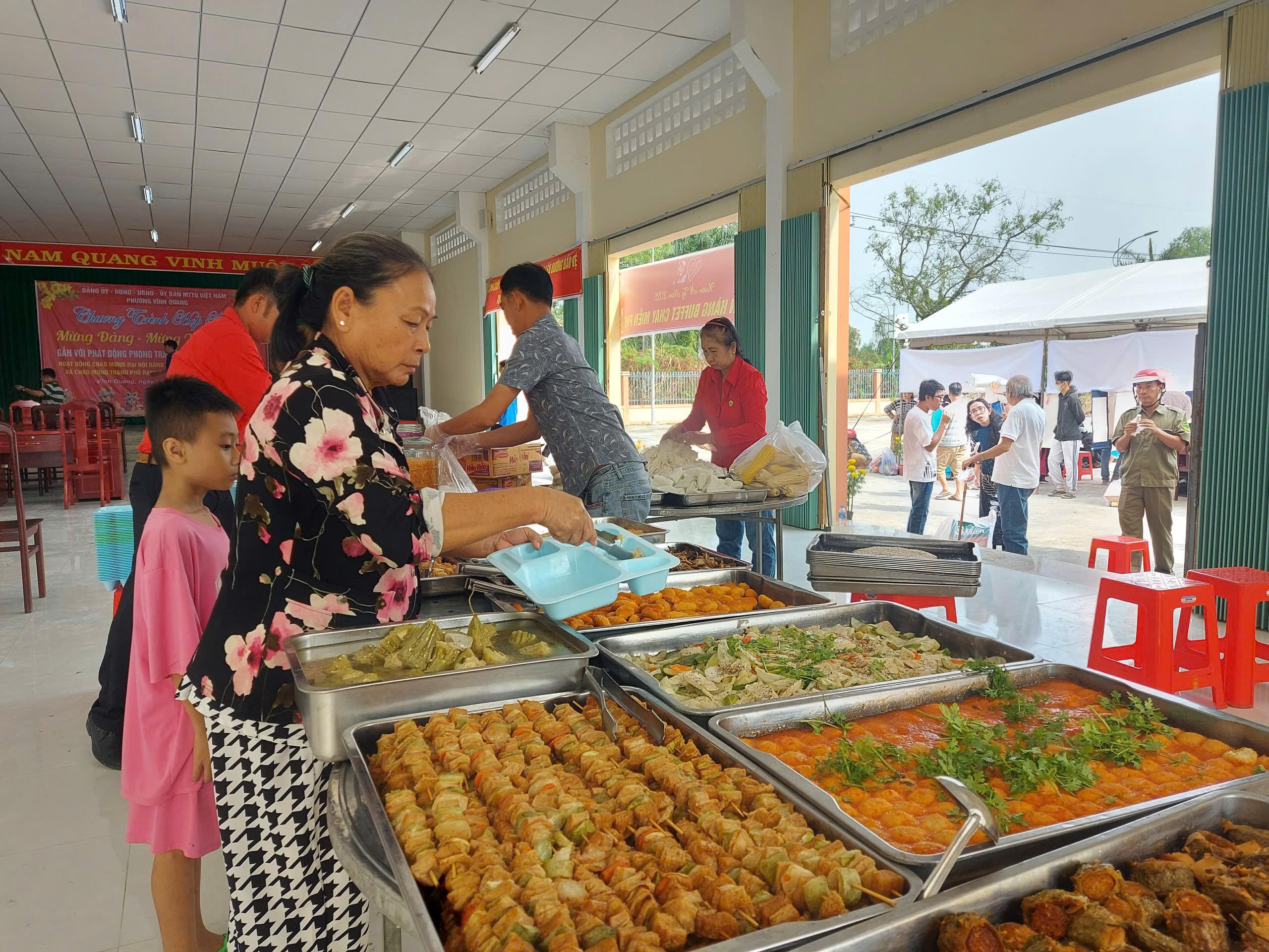 Nhận quà Tết xong, người nghèo Kiên Giang còn được thiết đãi cơm chay miễn phí |
