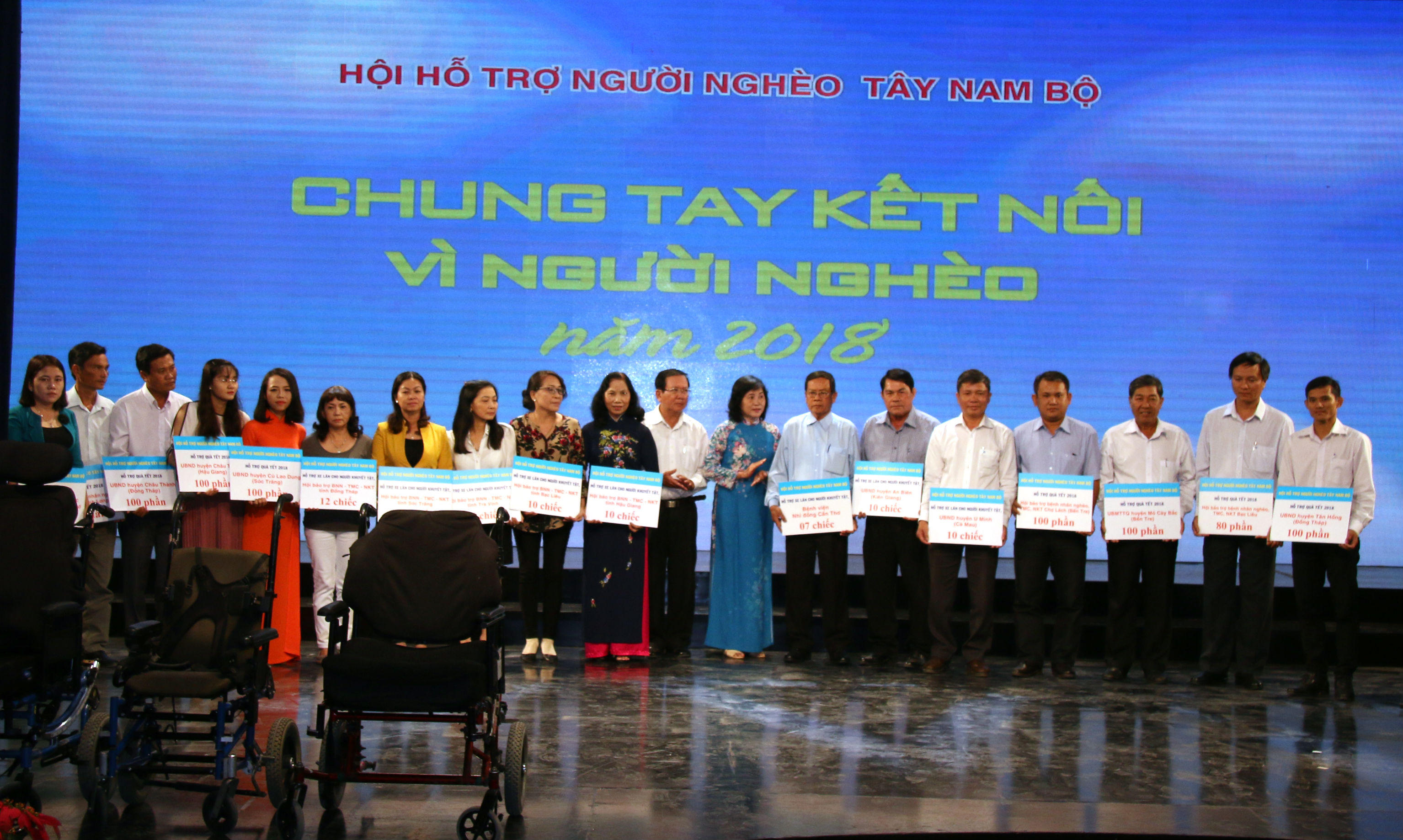 Đại diện Hội Hỗ trợ người nghèo Tây Nam Bộ hỗ trợ trao 189 xe lăn cho các người khuyết tật và hơn 2000 phần quà cho các hộ nghèo ở các địa phương trong khu vực ĐBSCL. |