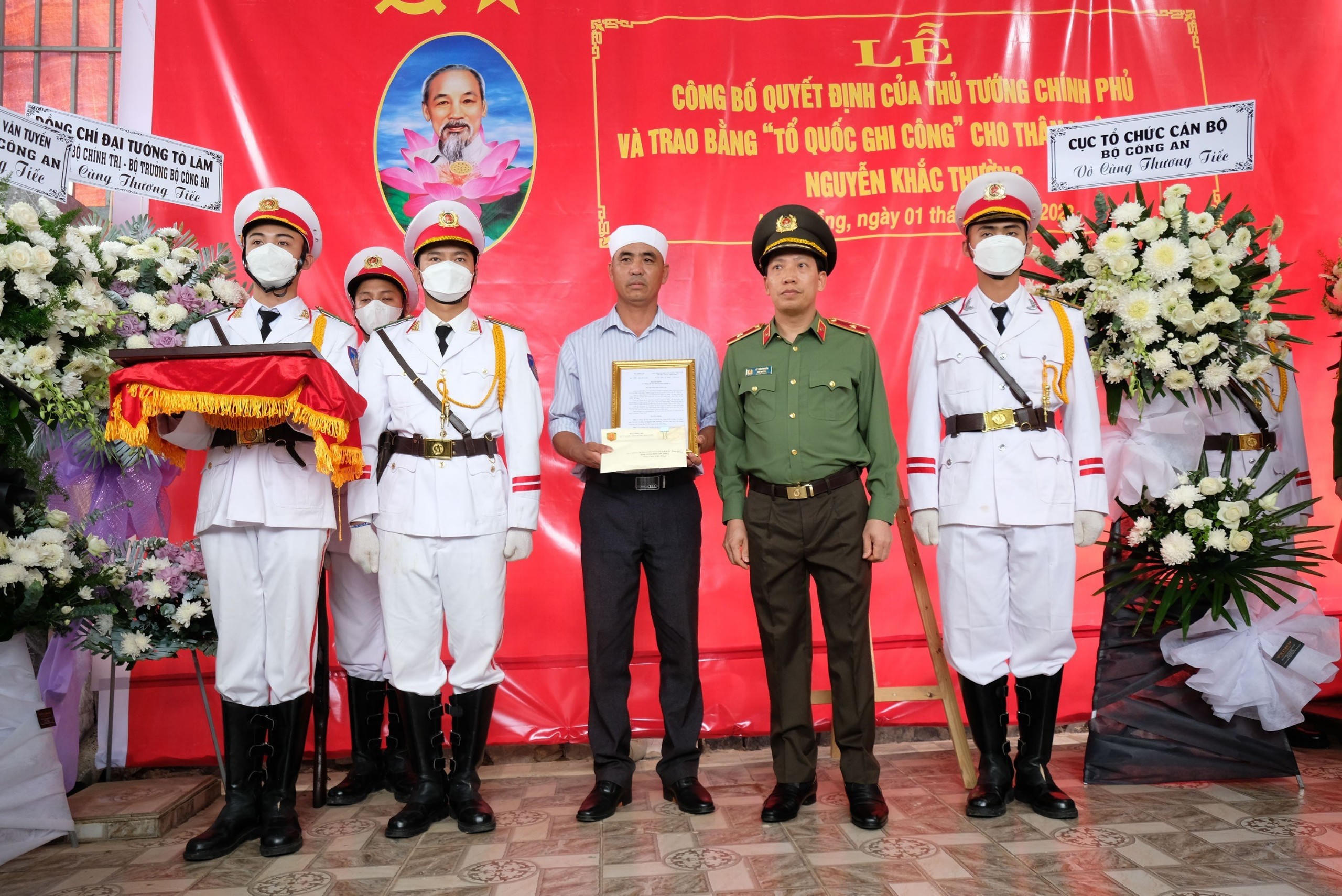 Thiếu tướng Lê Văn Tuyến, Thứ tưởng Bộ Công an cũng đến thăm hỏi và trao quyết định thăng cấp bậc hàm sĩ quan nghiệp vụ trước thời hạn đối với ba liệt sĩ gồm: Trung tá Nguyễn Khắc Thường (quê huyện Nam Sách, tỉnh Hải Dương), Thiếu tá Lê Quang Thành (quê huyện Triệu Phong, tỉnh Quảng Trị) và Đại úy Lê Ánh Sáng (quê huyện Thạch Hà, tỉnh Hà Tĩnh).