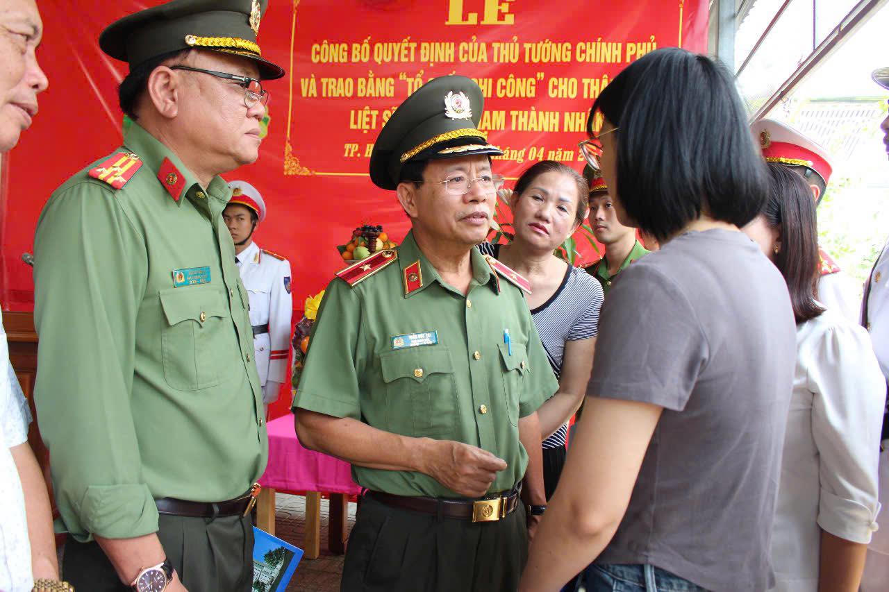 Ngày 4/4, Thiếu tướng Trần Đức Tài, Phó Giám đốc Công an TP HCM chủ trì tổ chức Lễ công bố Quyết định của Thủ tướng Chính phủ và trao Bằng “Tổ quốc ghi công” cho thân nhân liệt sĩ Nguyễn Phạm Thành Nhân - nguyên là cán bộ Đội Cảnh sát giao thông trật tự, Công an huyện Hóc Môn.