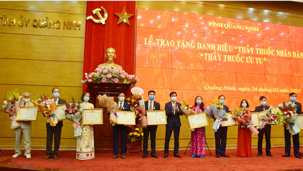 Nhân dịp này, Bác sĩ chuyên khoa I Vũ Xuân Diện - Trưởng Ban Nội chính Tỉnh ủy, nguyên Giám đốc Sở Y tế Quảng Ninh; Bác sĩ chuyên khoa II Nguyễn Quốc Hùng - Giám đốc Bệnh viện Sản – Nhi; Bác sĩ chuyên Khoa II Lê Ngọc Dũng - Giám đốc bệnh viện Bãi Cháy đã vinh dự đón nhận danh hiệu Thầy thuốc Nhân dân do Chủ tịch Nước phong tặng. 20 bác sĩ được phong tặng danh hiệu Thầy thuốc ưu tú.