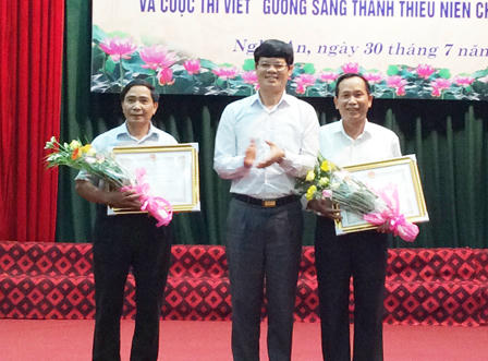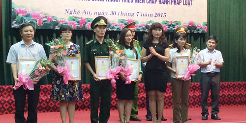(PLO) - Chiều 30/7, UBND tỉnh Nghệ An tổ chức lễ tổng kết và trao giải thưởng cuộc thi viết “Tìm hiểu Hiến pháp Nước CHXHCN Việt Nam” và cuộc thi viết “Gương sáng thanh thiếu niên chấp hành pháp luật”.