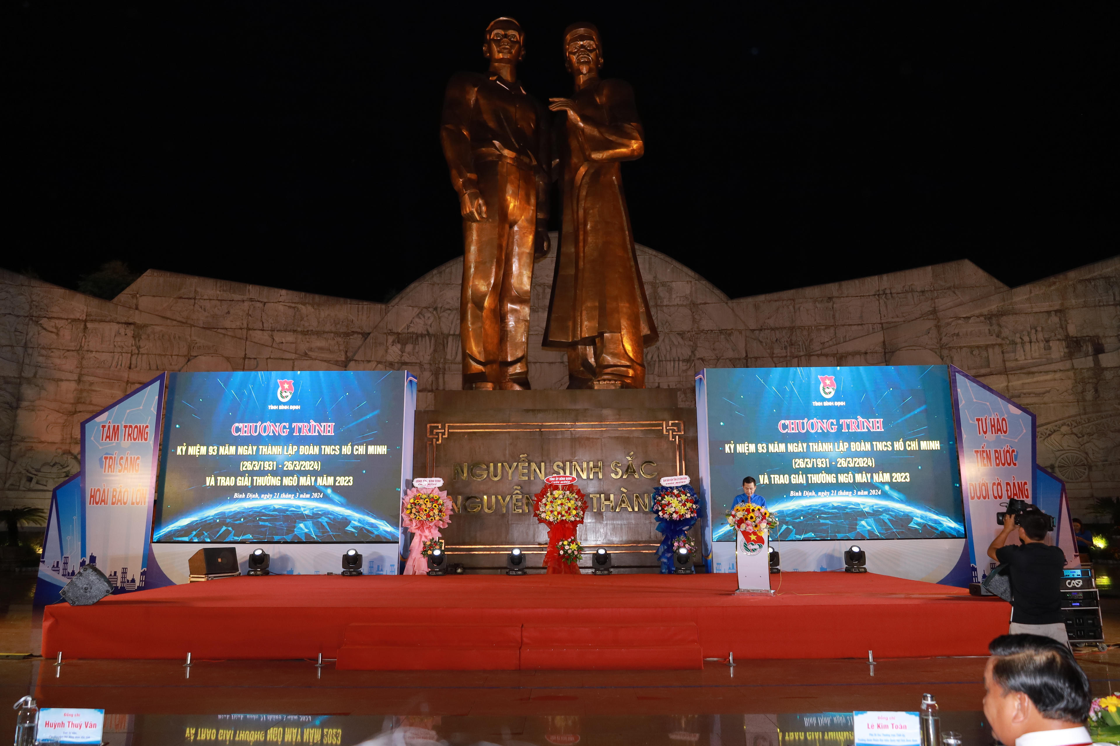 (PLVN) - Chương trình kỷ niệm 93 năm Ngày thành lập Đoàn TNCS Hồ Chí Minh (26/3/1931 - 26/3/2024) và trao Giải thưởng Ngô Mây năm 2023 diễn ra tại Tượng đài Nguyễn Sinh Sắc - Nguyễn Tất Thành tối 21/3.